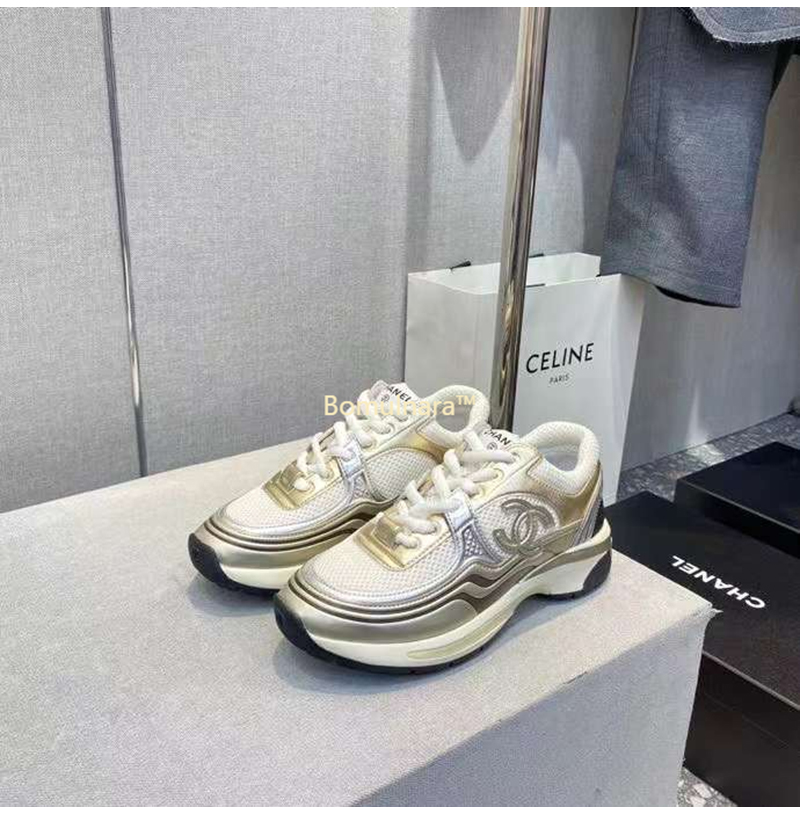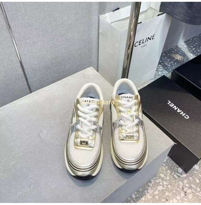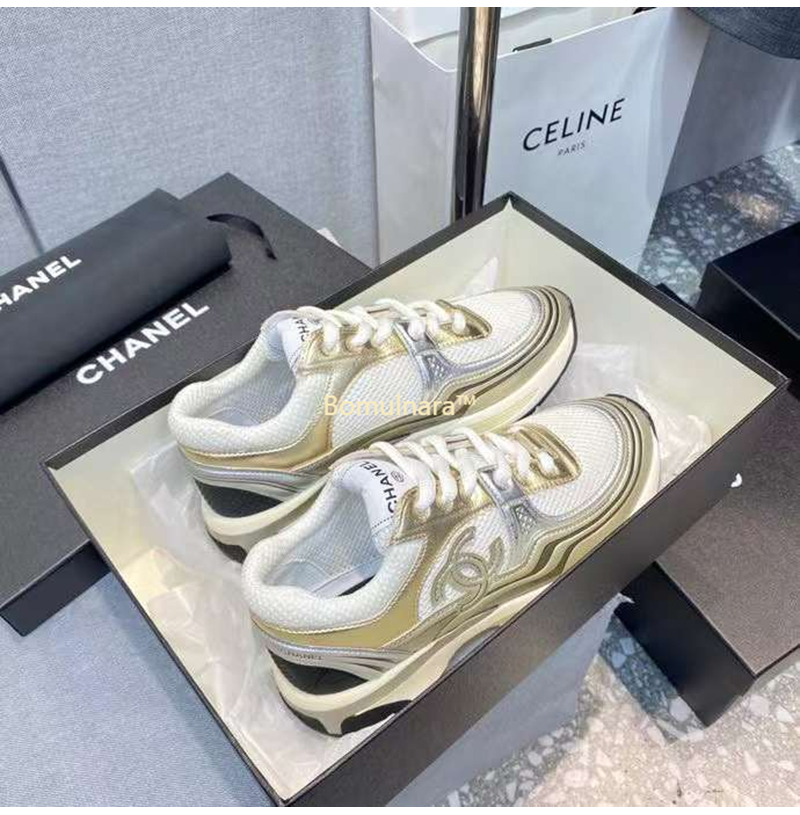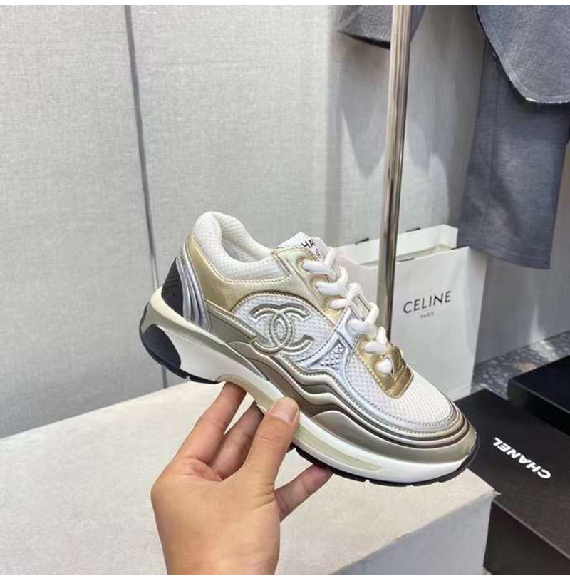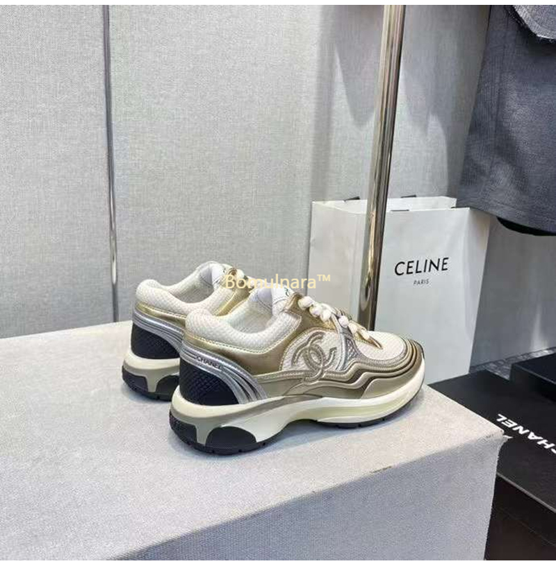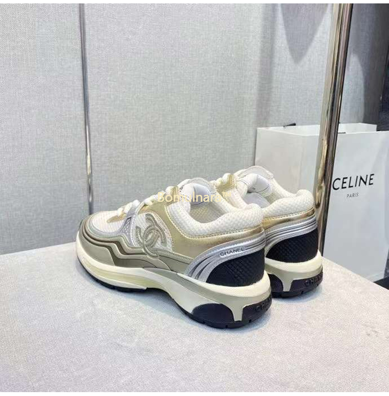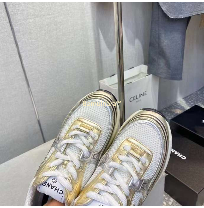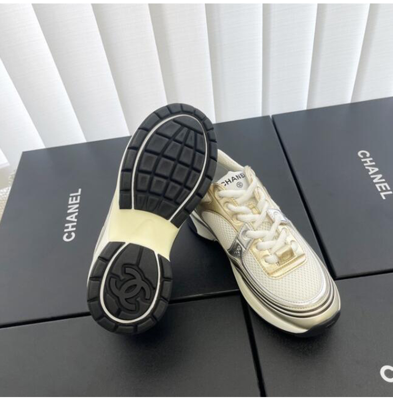CHANEL-G39792 샤넬 화이트/골드/실버 CC 로고 샤식스 여성 운동화