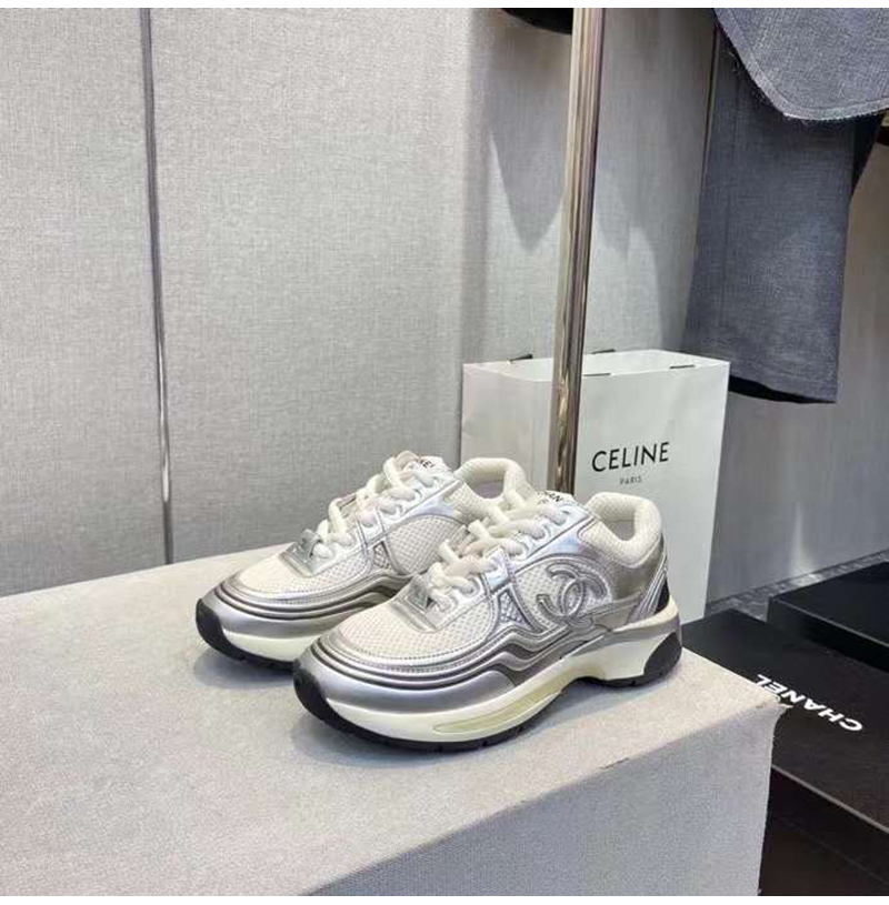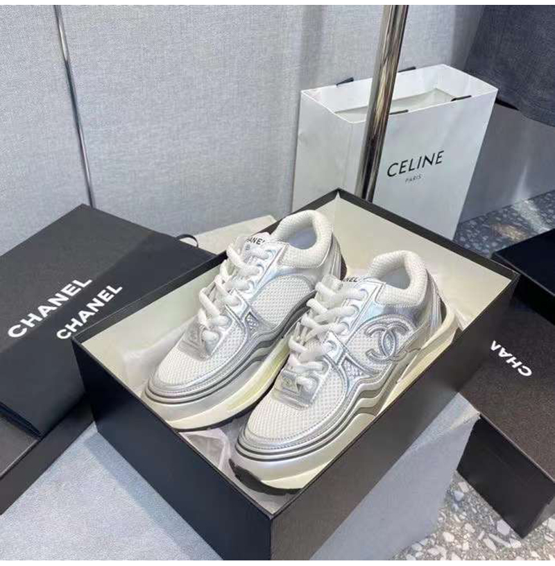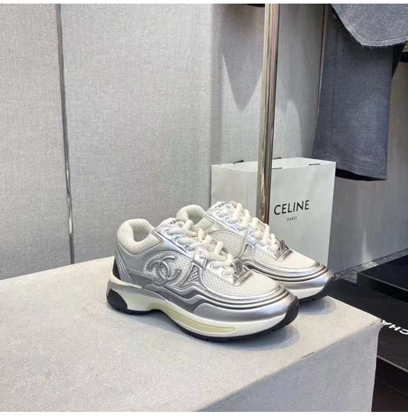 CHANEL-G39792 샤넬 화이트/골드/실버 CC 로고 샤식스 여성 운동화