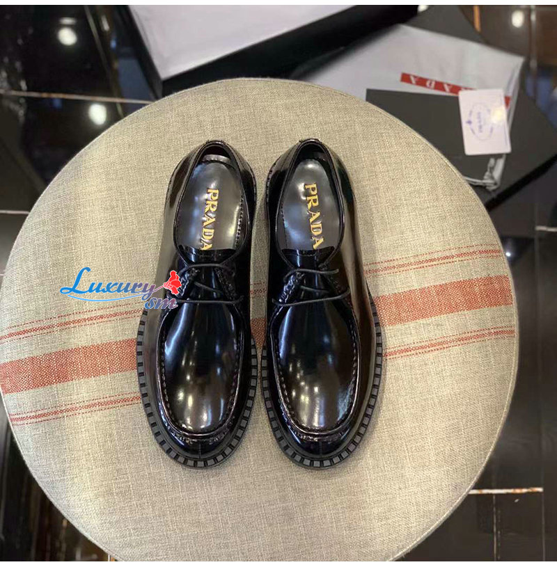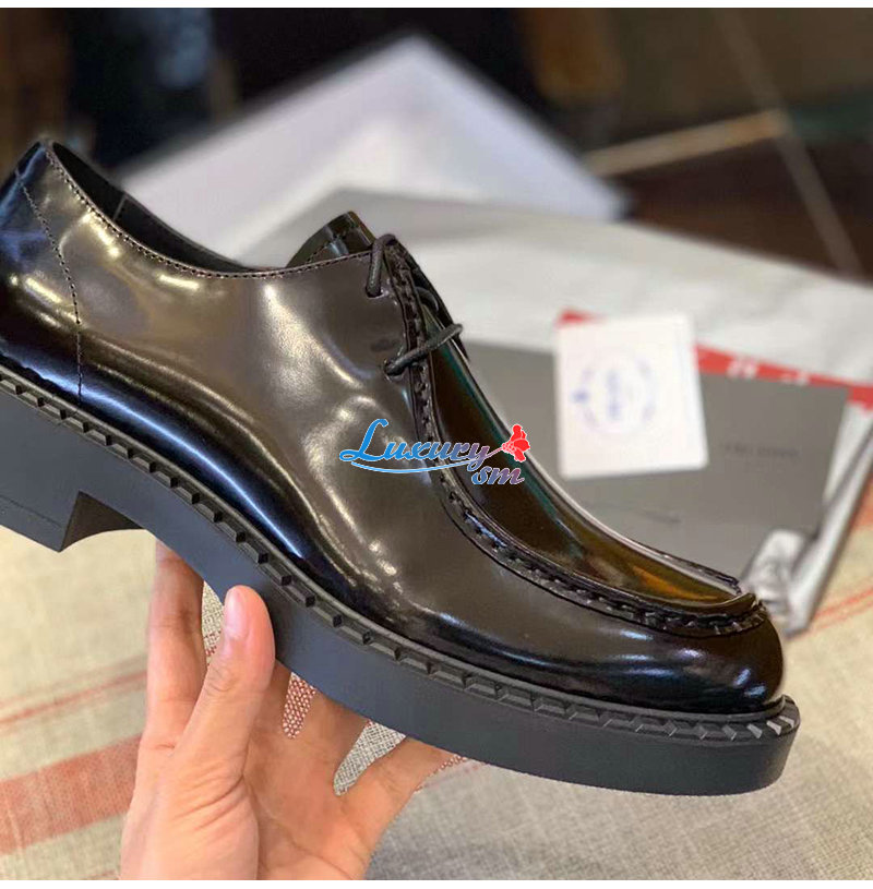 PRADA-2EE346 프라다 블랙 블러시드 가죽 레이스업 남성용
