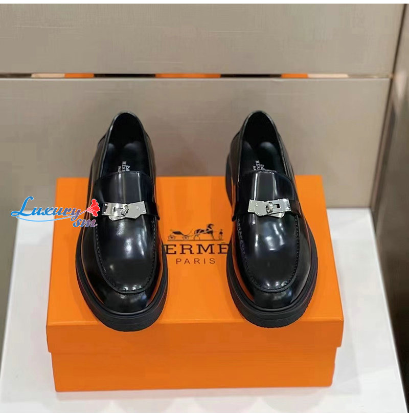 HERMES-04031 에르메스 블랙 페이턴트 가죽 로퍼 남성용
