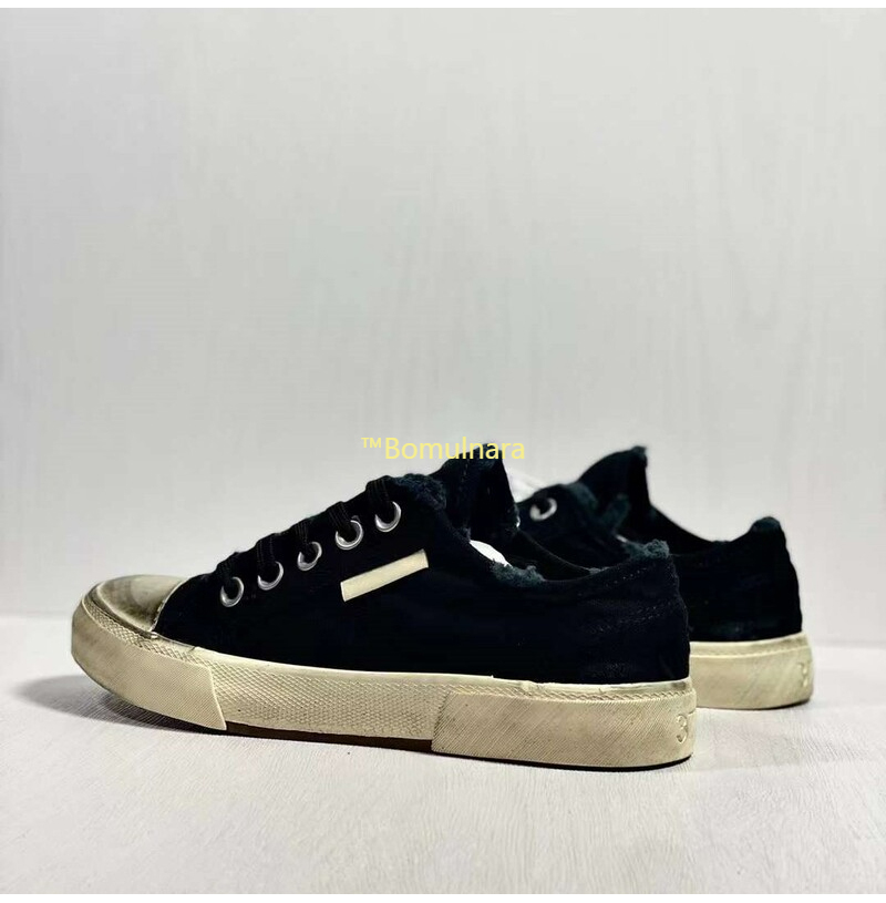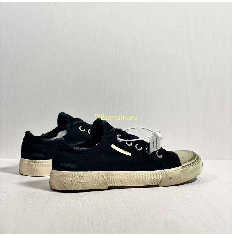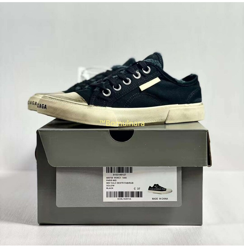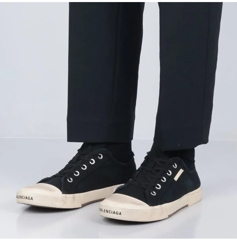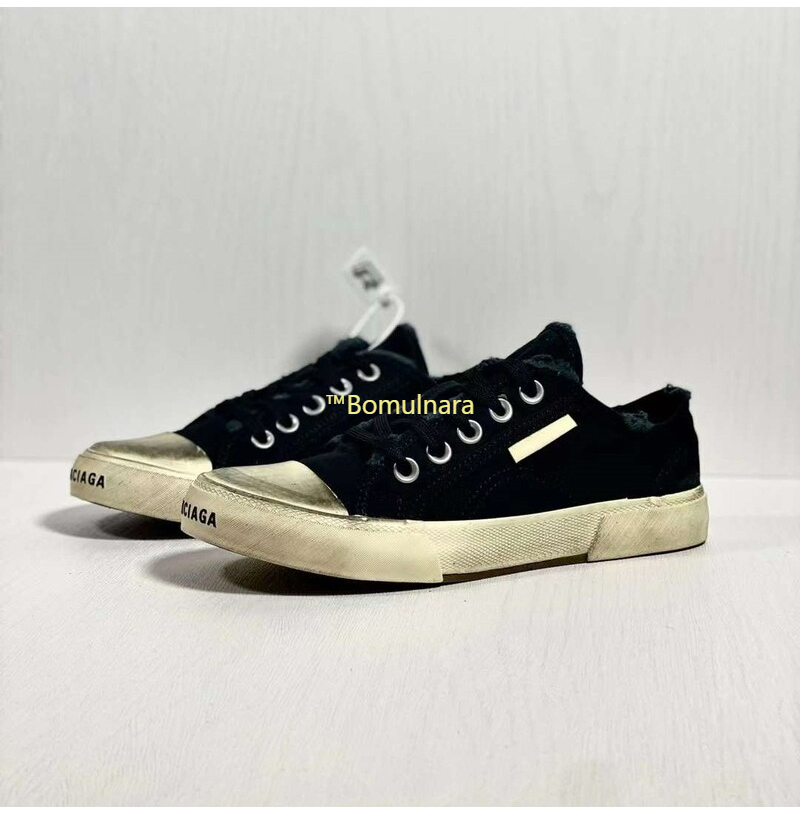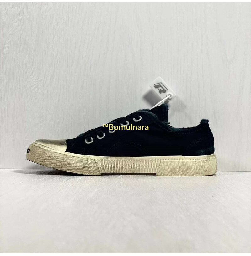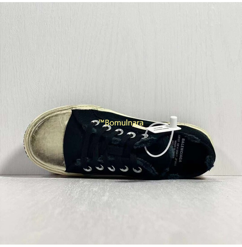 BALENCIAGA-688754 발렌시아가 블랙 디스트로이드 코튼 앤 화이트 러버 Paris Low Top 스니커즈
