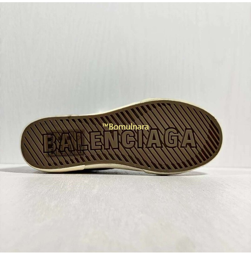 BALENCIAGA-688754 발렌시아가 화이트 디스트로이드 코튼 앤 화이트 러버 Paris Low Top 스니커즈