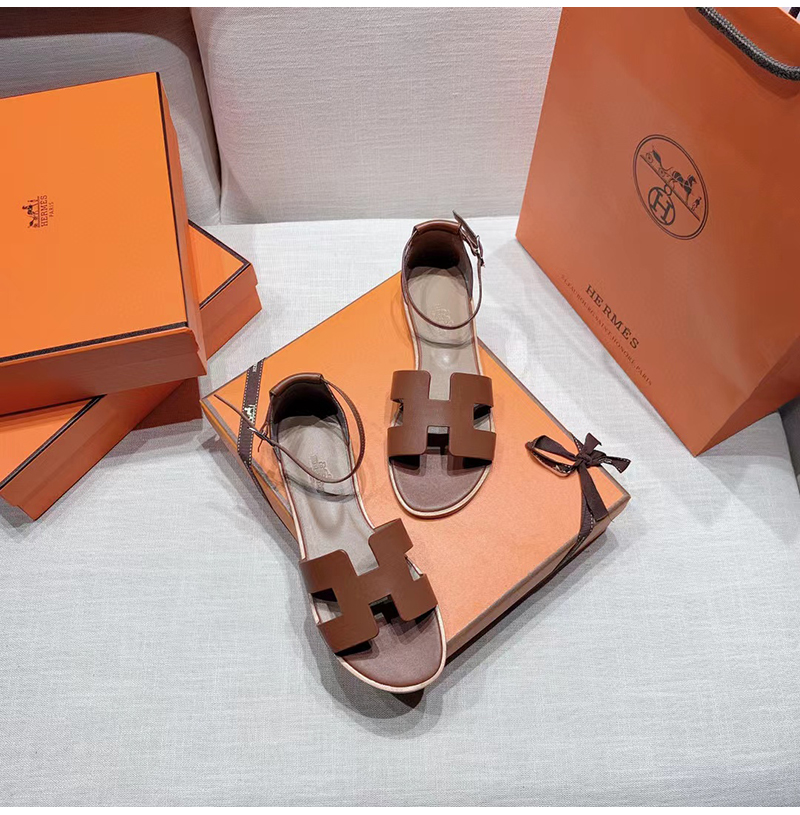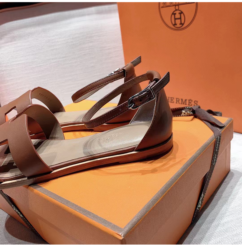 HERMES-H182139 에르메스 브라운 카프스킨 Santorini 샌들 여성용