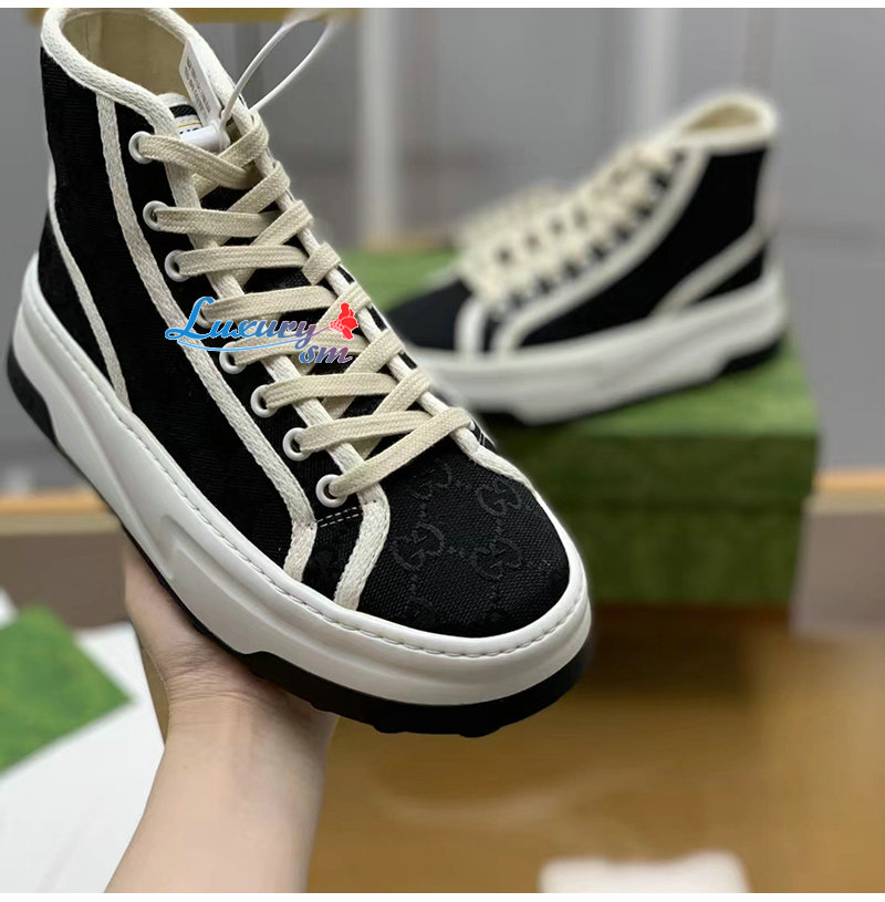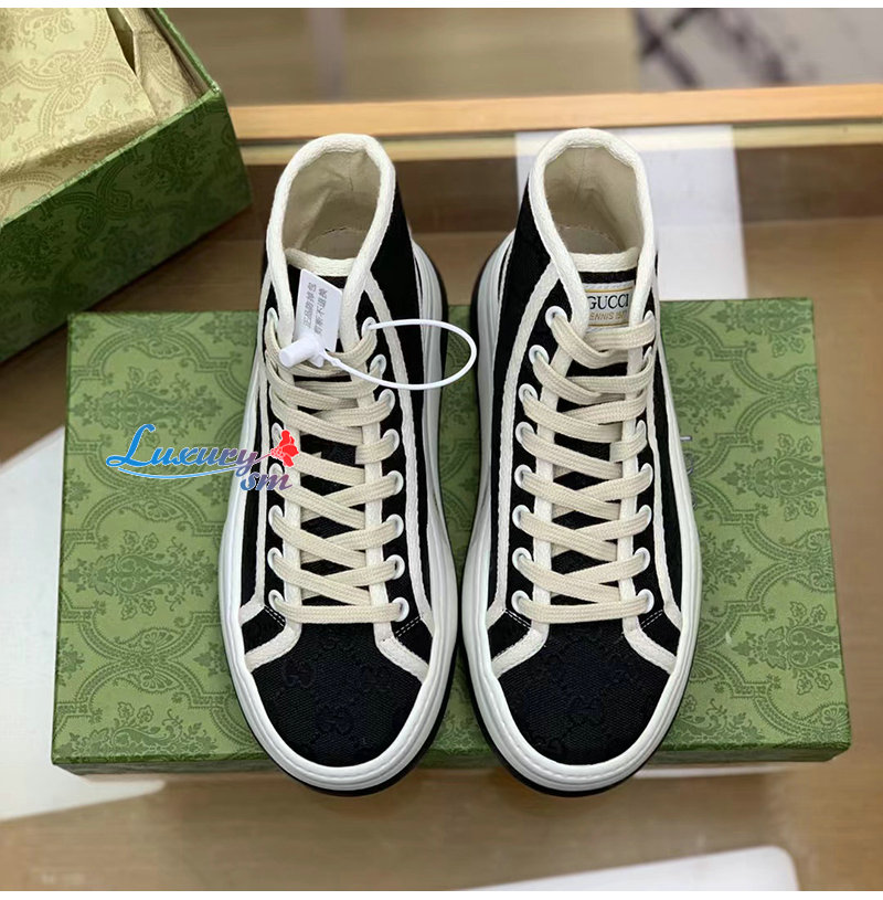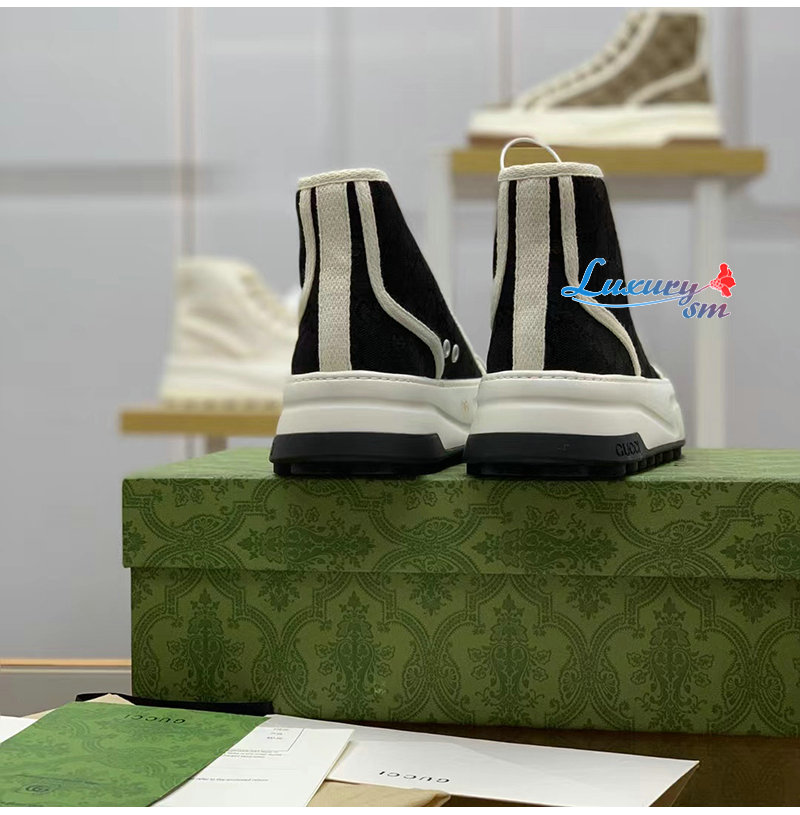 GUCCI-746768 1043 구찌 블랙 오리지널 GG 캔버스 하이탑 스니커즈 여성용