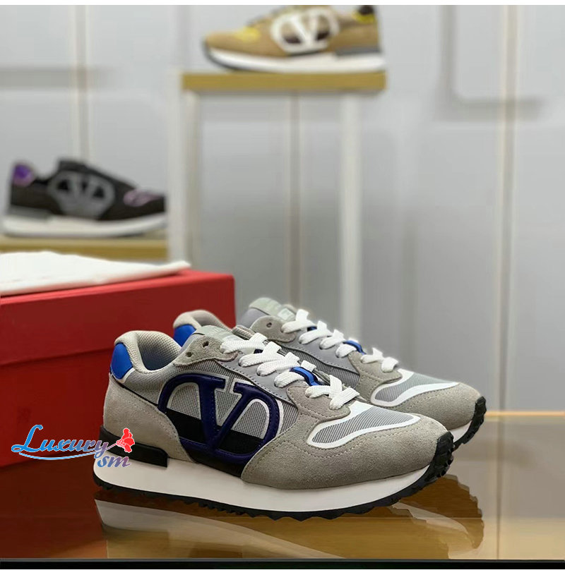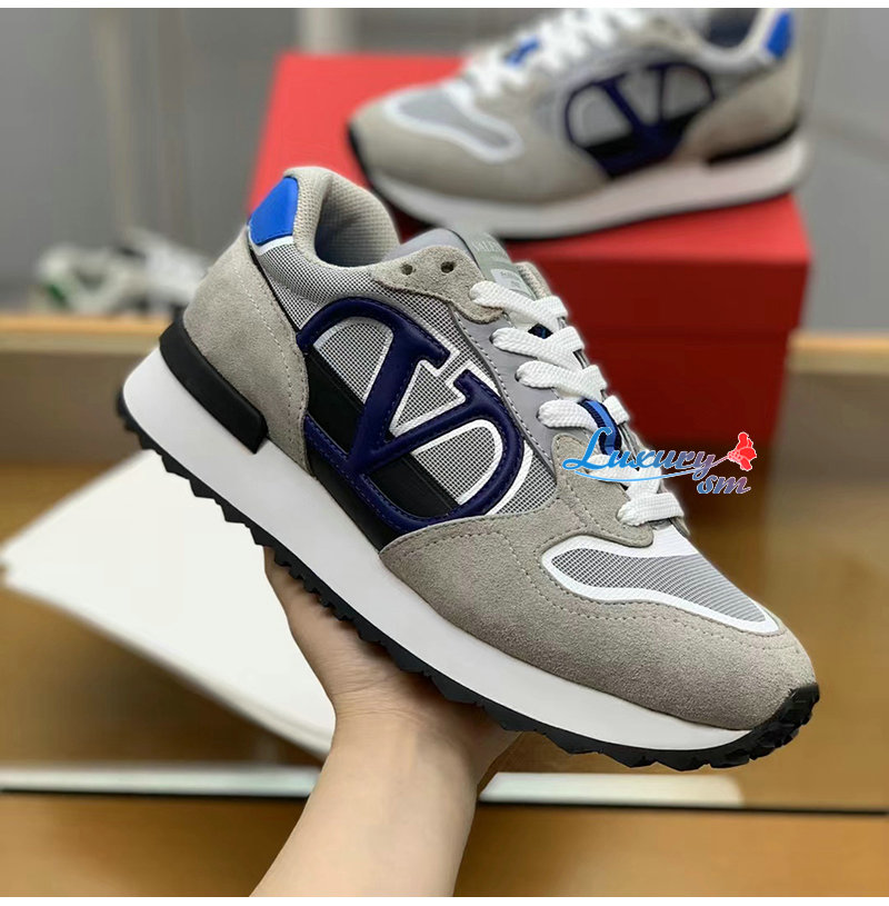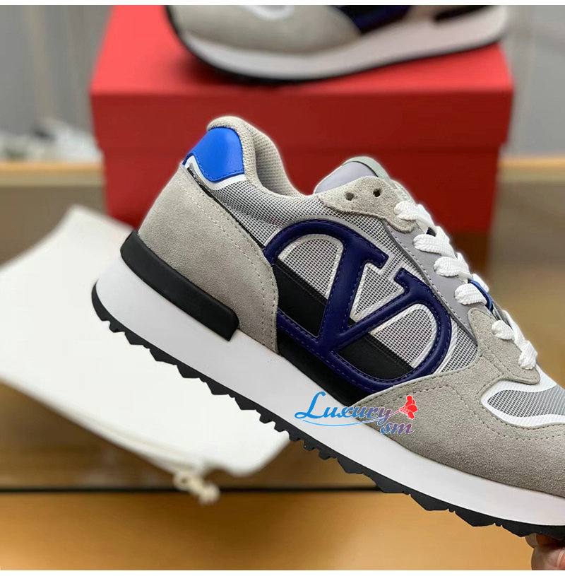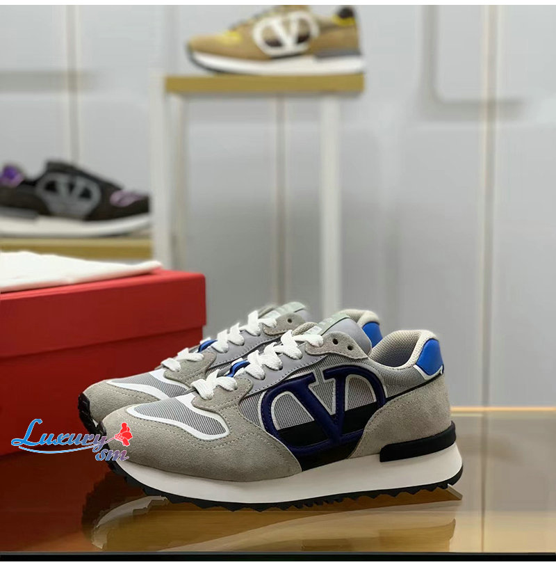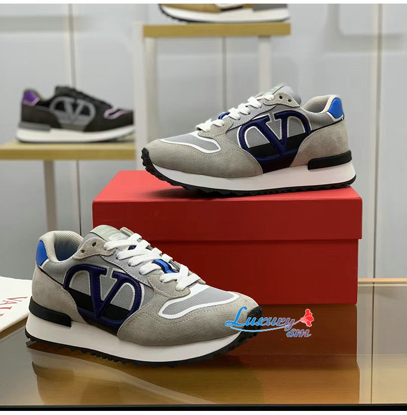 VALENTINO-3Y2S0H17 발렌티노 그레이/블루 VLOGO 페이스 로우탑 스니커즈 남성용