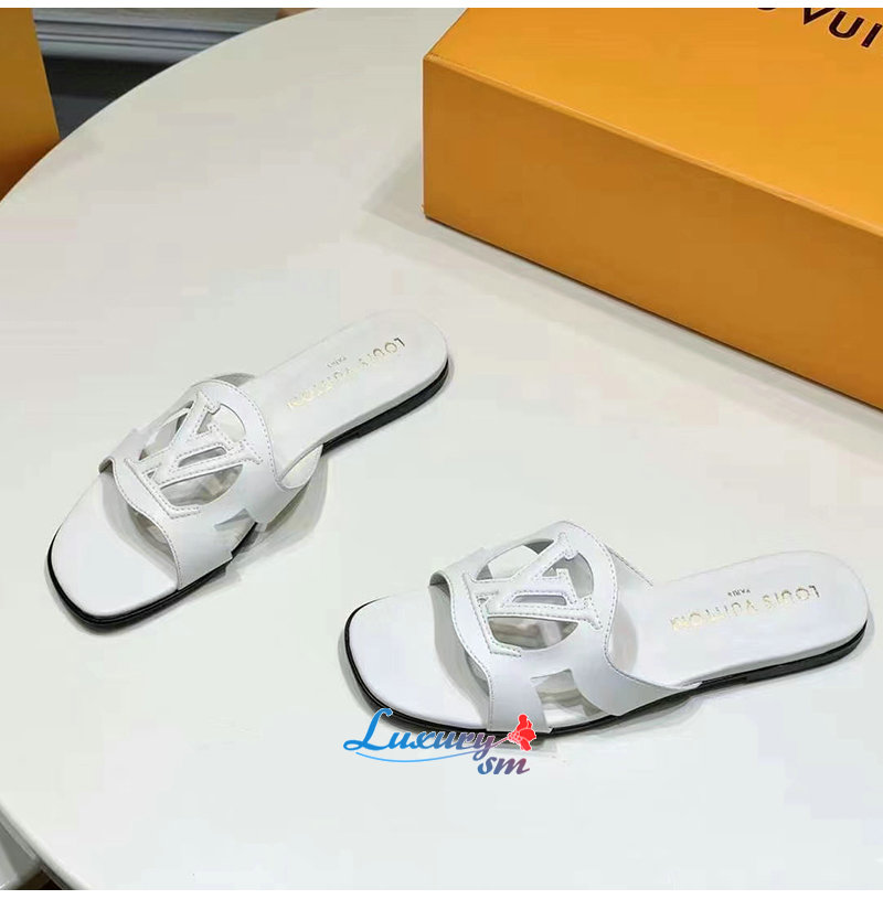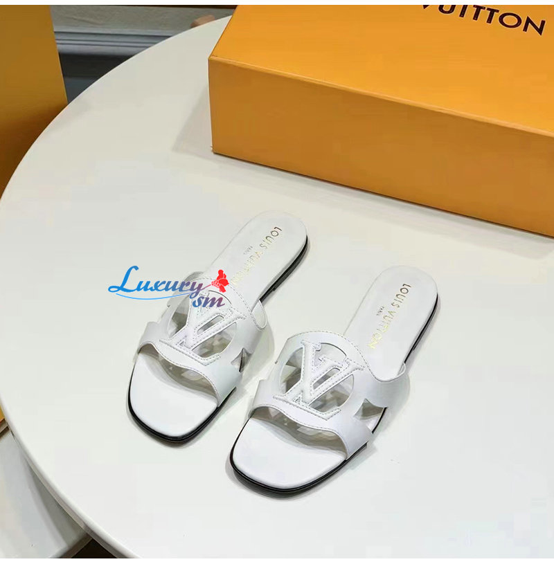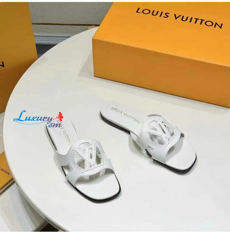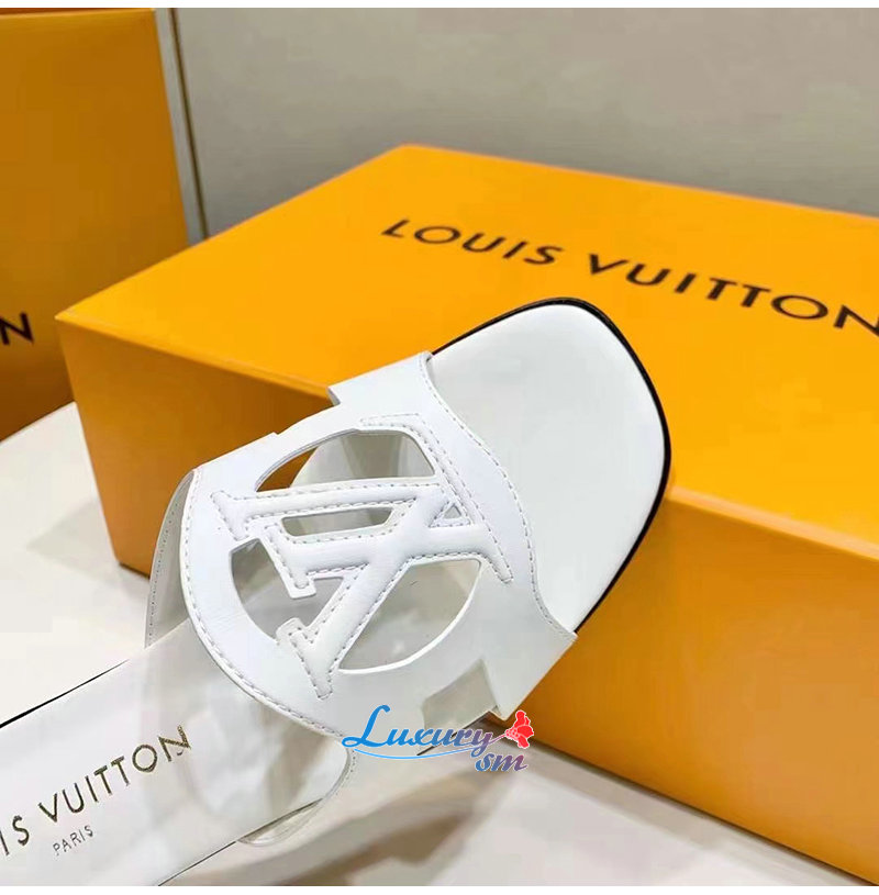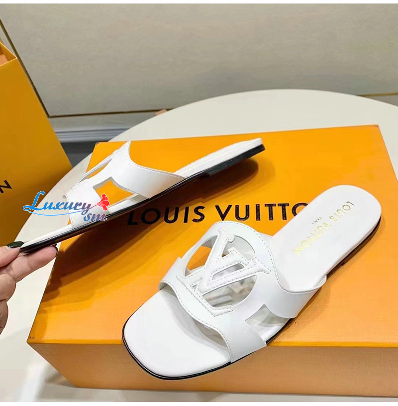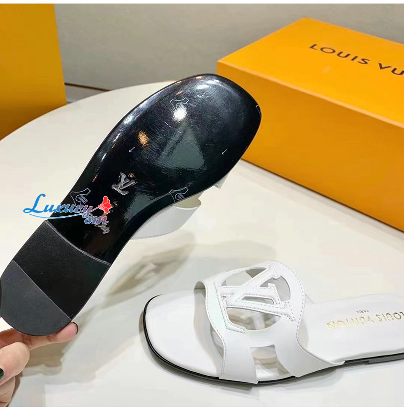 LOUIS VUITTON-1ABOZF 루이비통 화이트 LV 이솔라 플랫 뮬 여성용