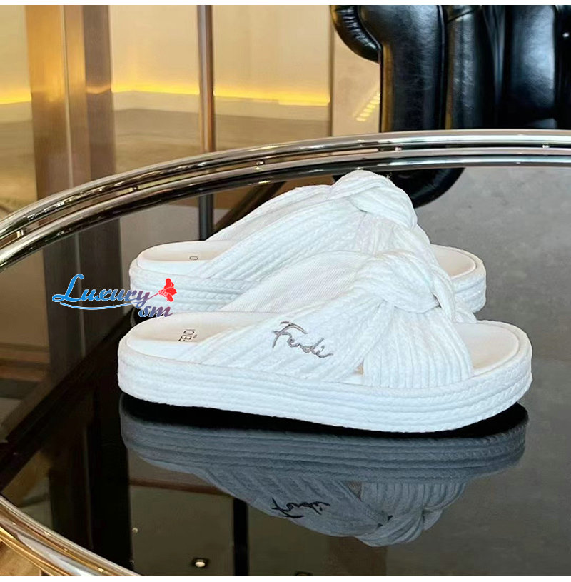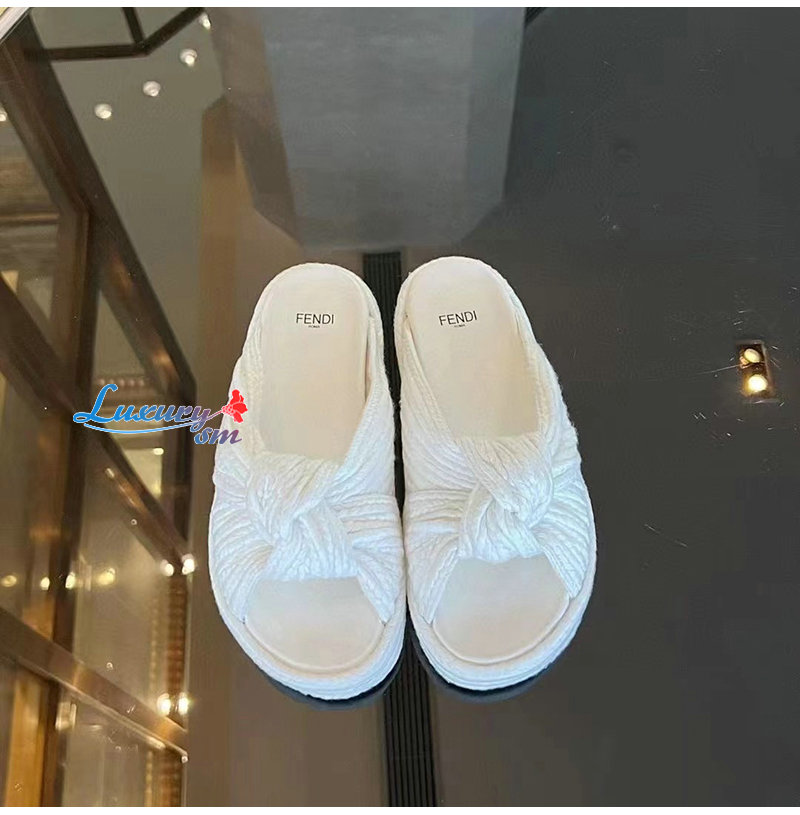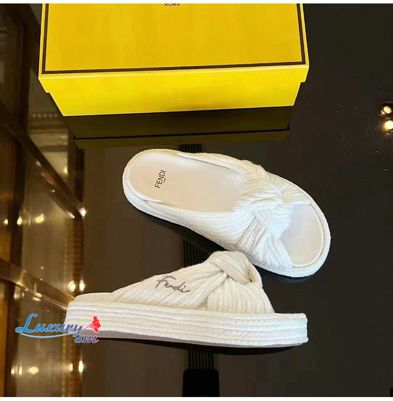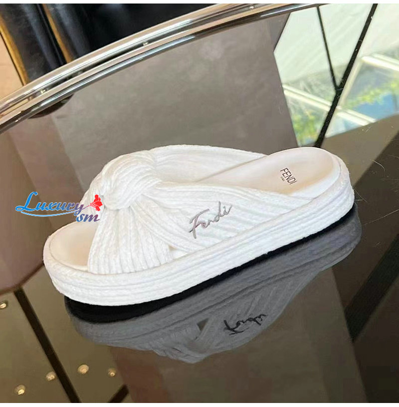 FENDI-8X8424 펜디 화이트 라피아 슬라이드 여성용
