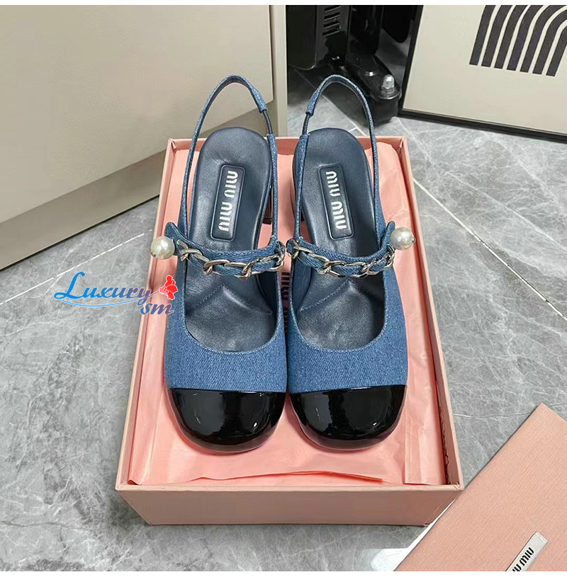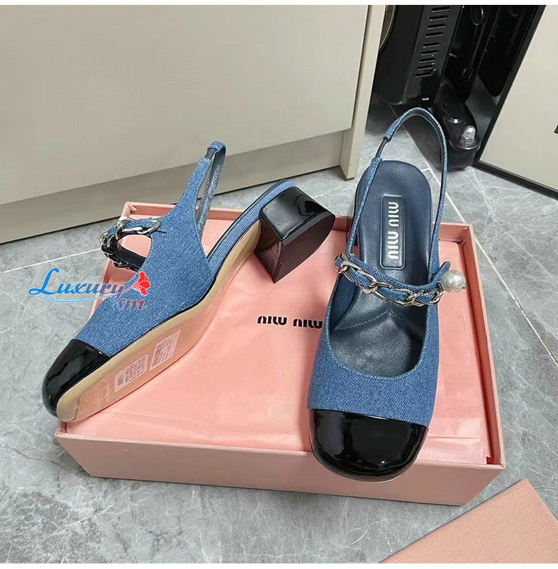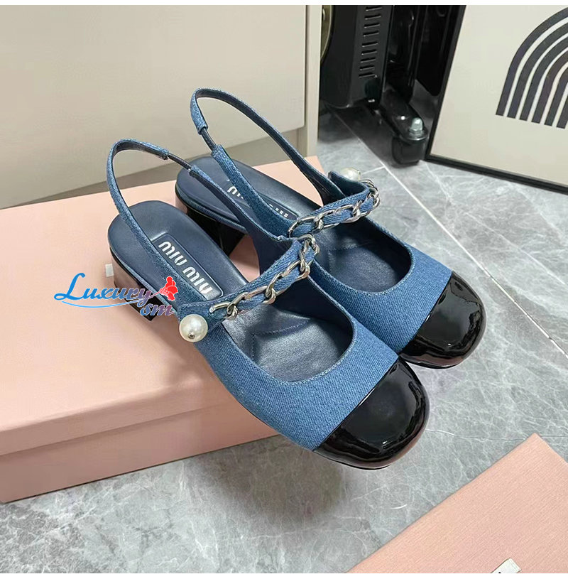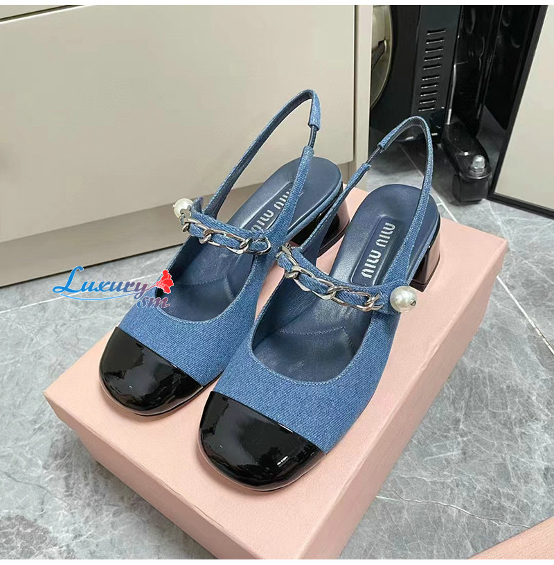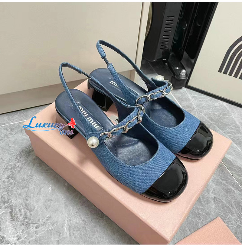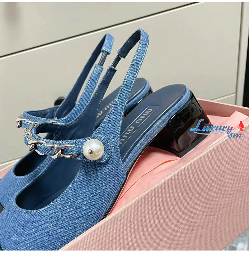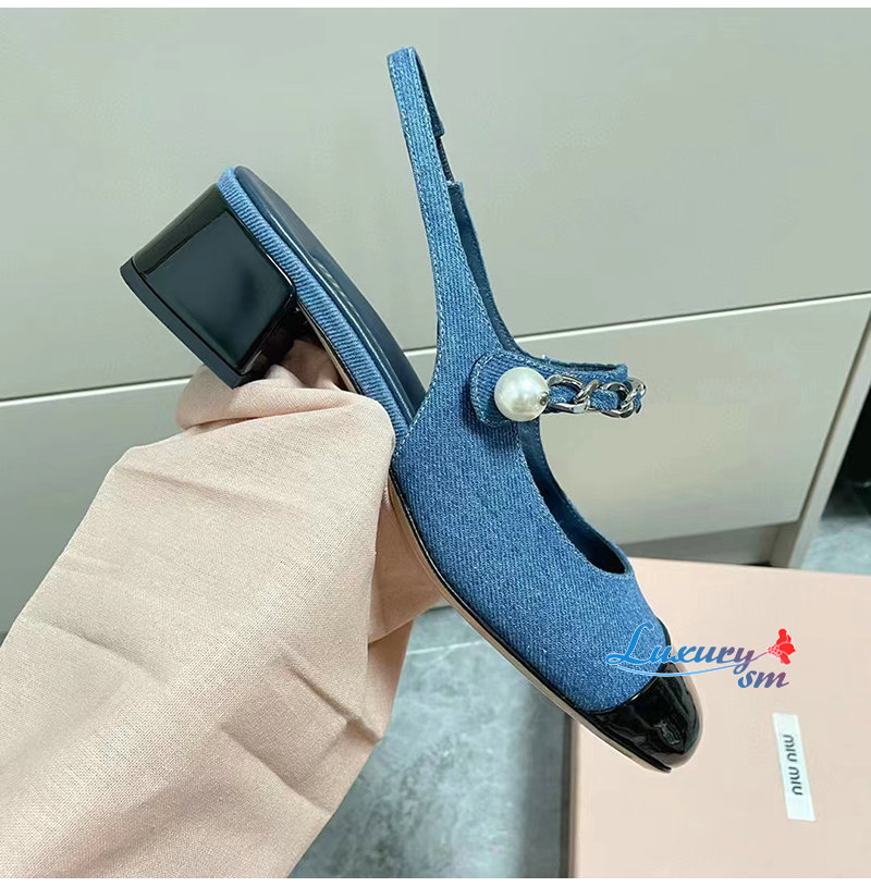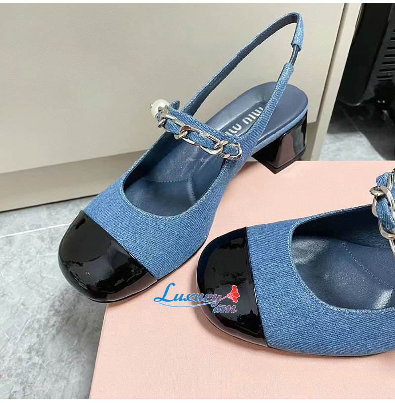 MIUMIU-5I045E 미우미우 블루 데님 슬링백 펌프스