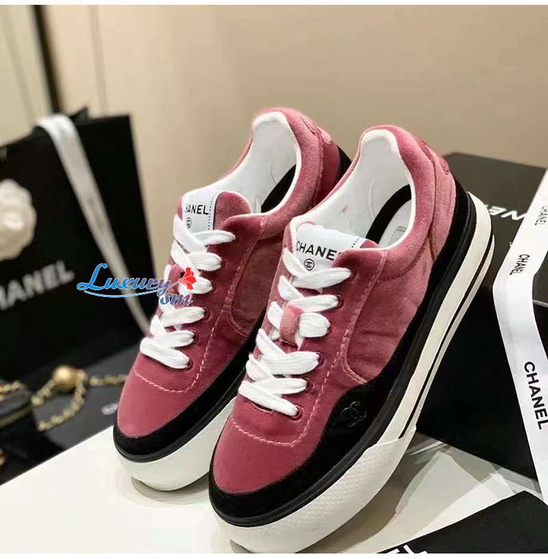 CHANEL-G45208 샤넬 핑크 벨벳 스니커즈 여성용