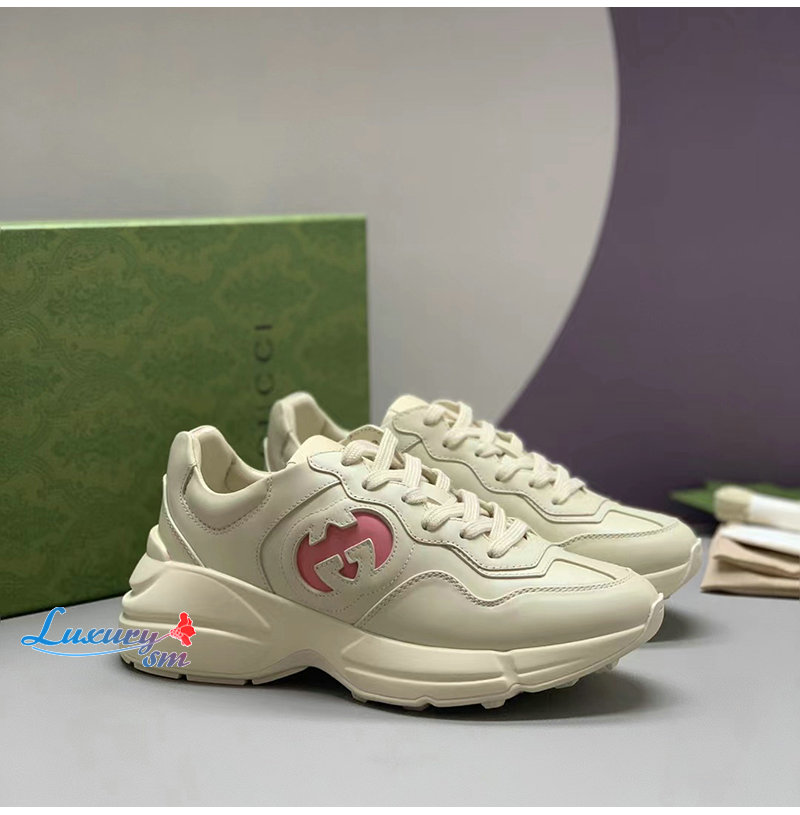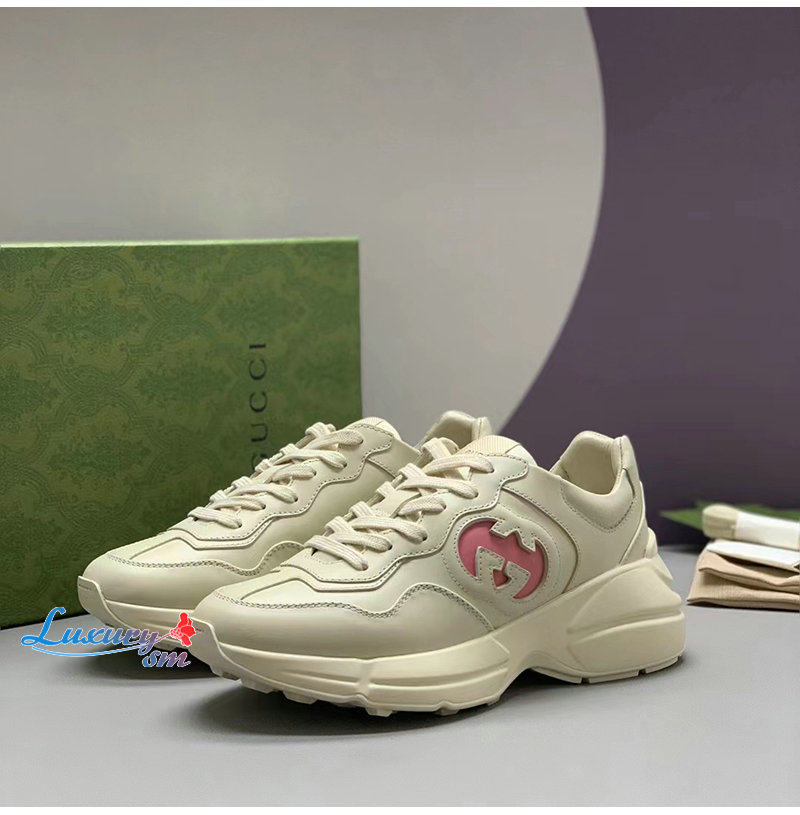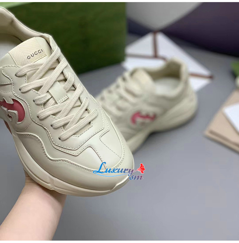 [스페셜오더]GUCCI-757887 9564 구찌 롸이톤 아이보리/핑크 가죽 스니커즈 여성용