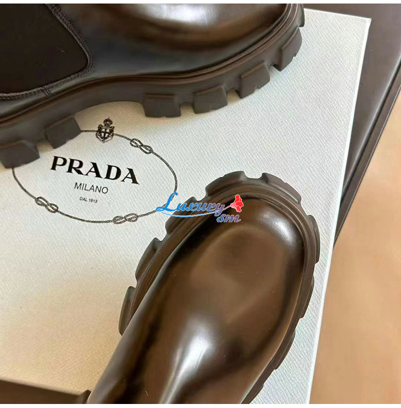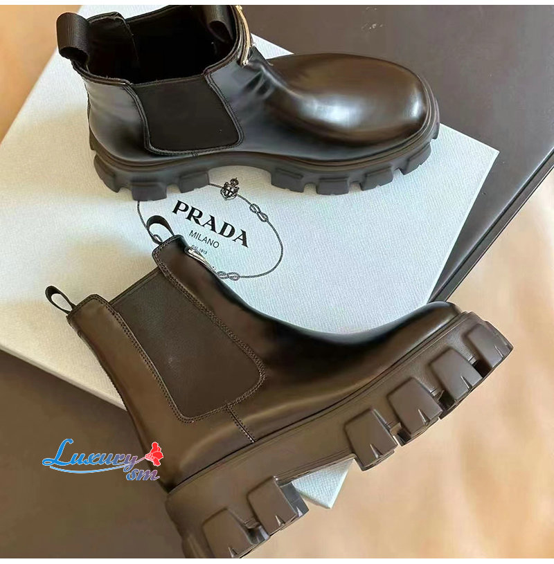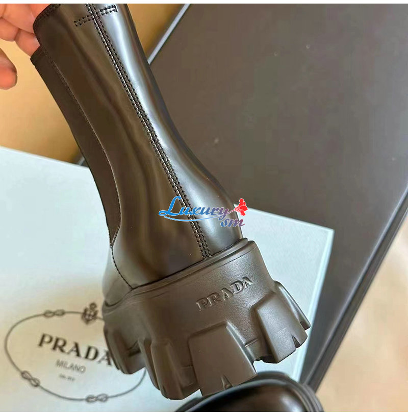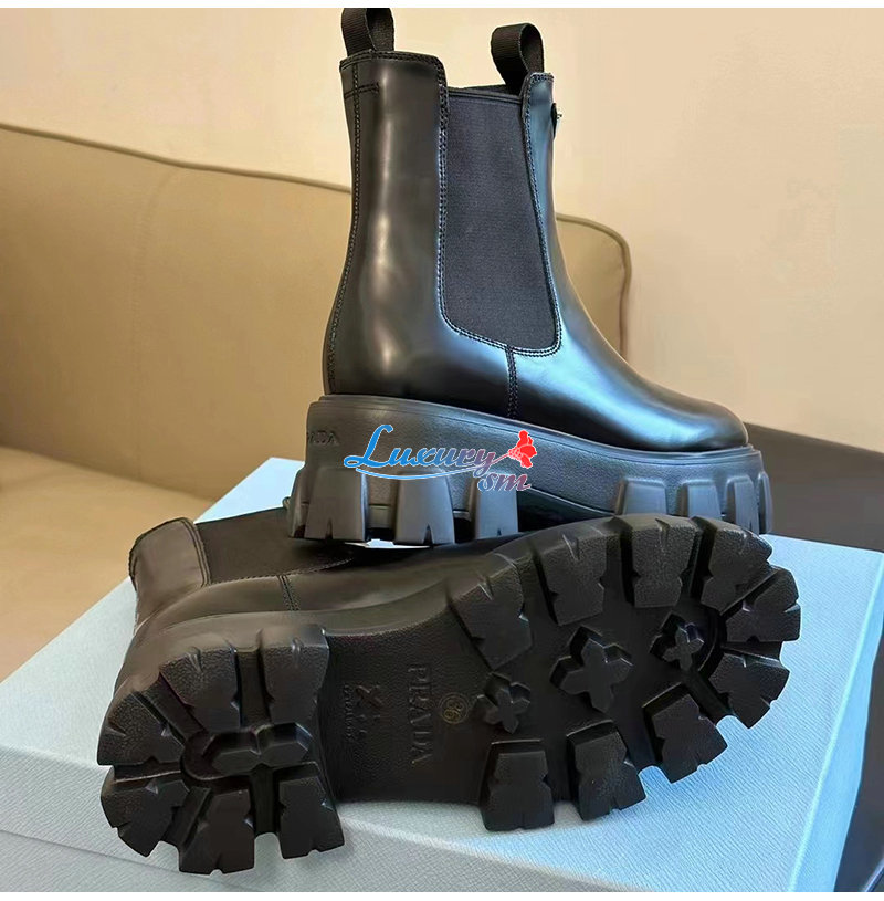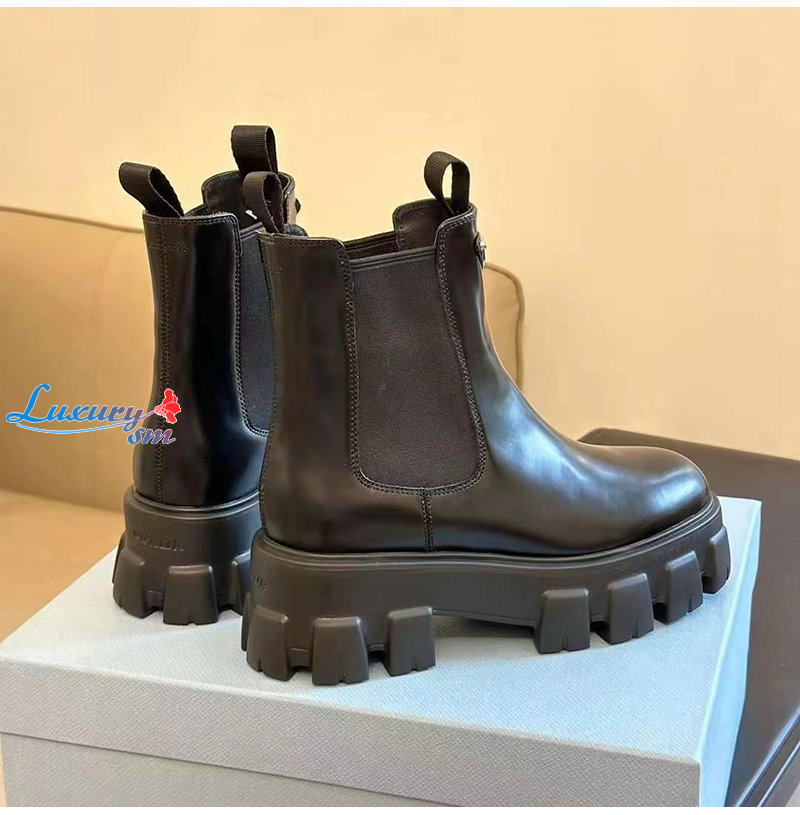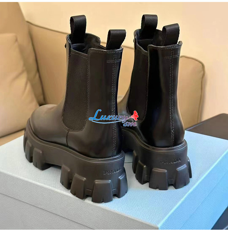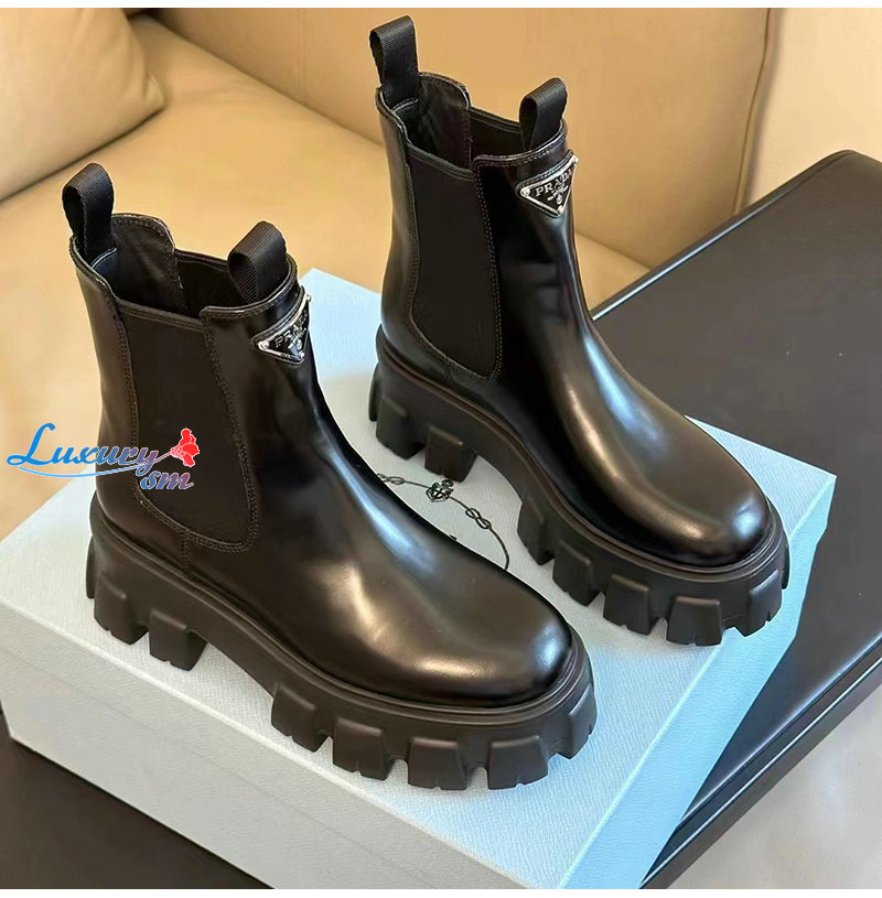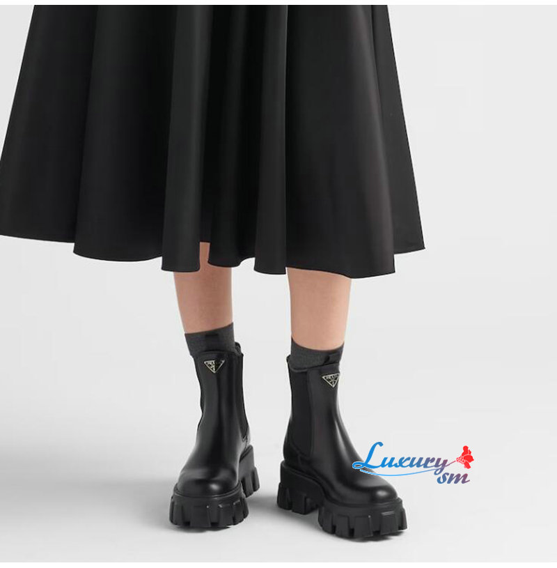 PRADA-1T256N 프라다 블랙 모놀리스 브러시드 가죽 부티 여성용
