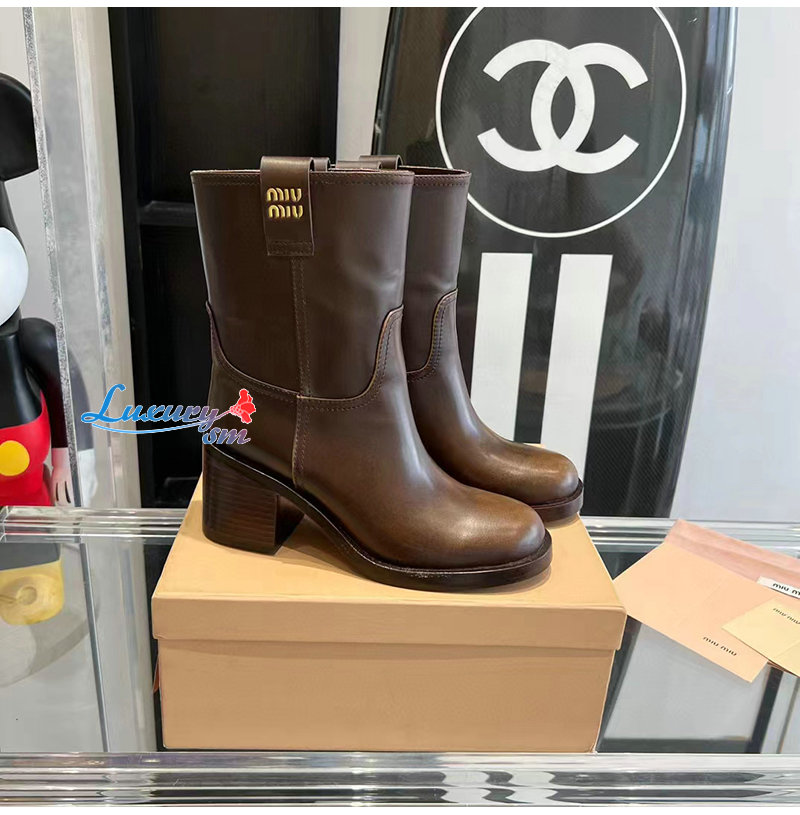 MIUMIU-5U966D 미우미우 시에나 퓌메 가죽 부티