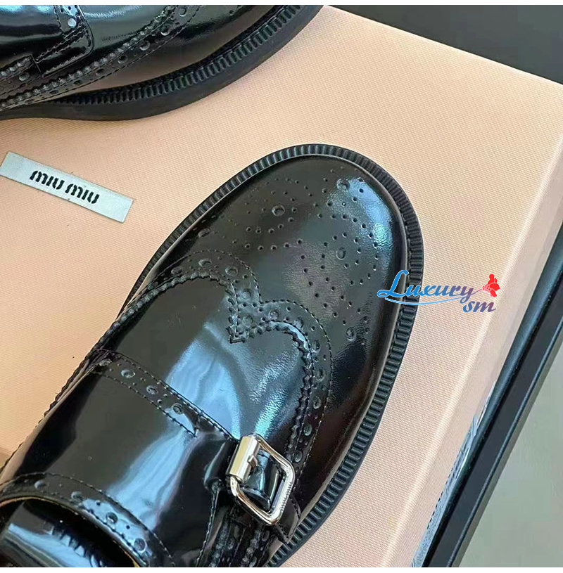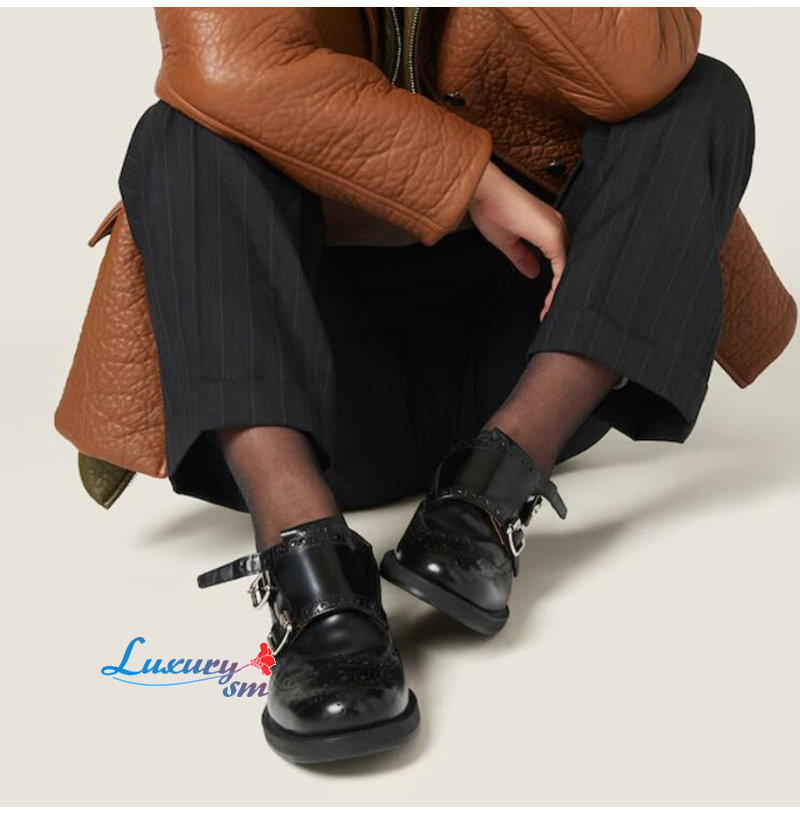 MIUMIU-5E039E 미우미우 타바코 처치스 x 미우미우 더블 몽크 브로그 슈즈 여성용