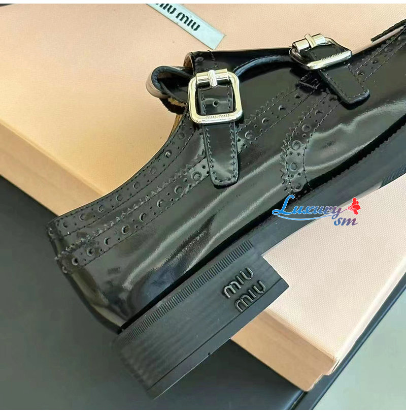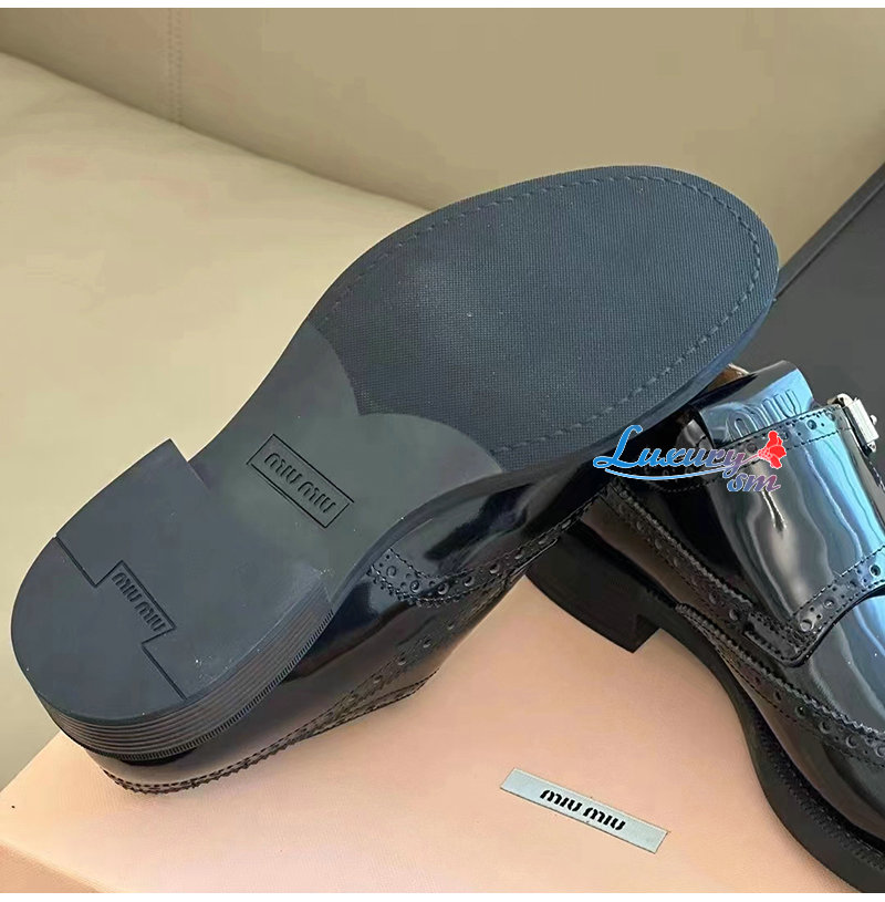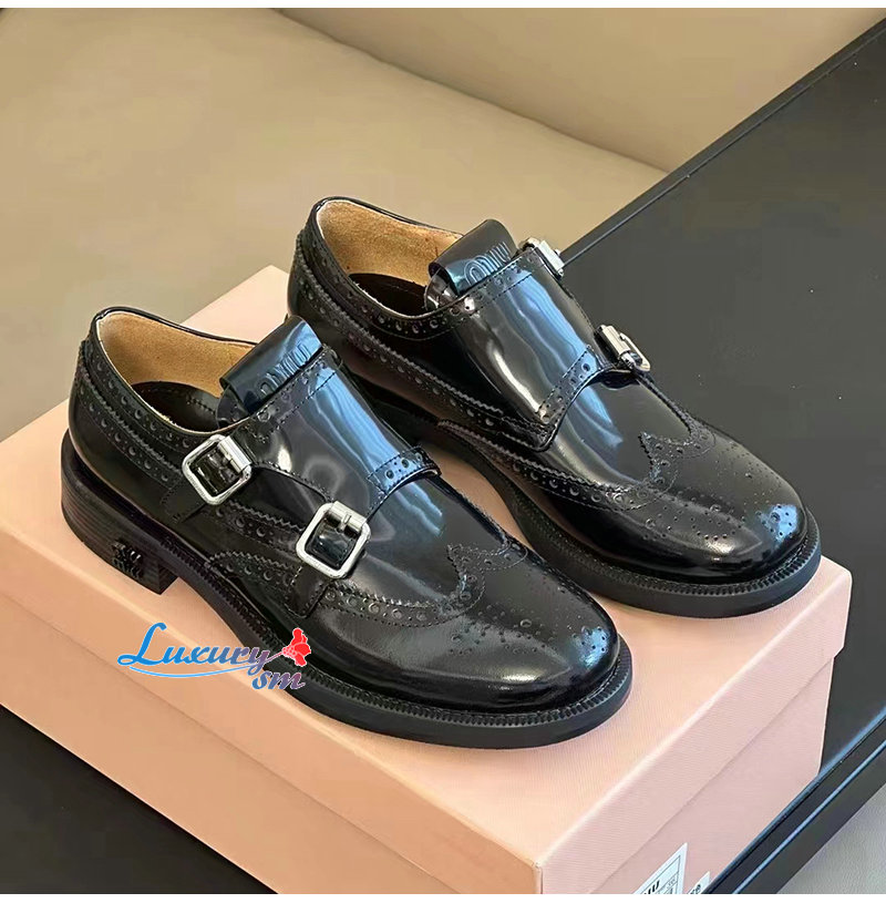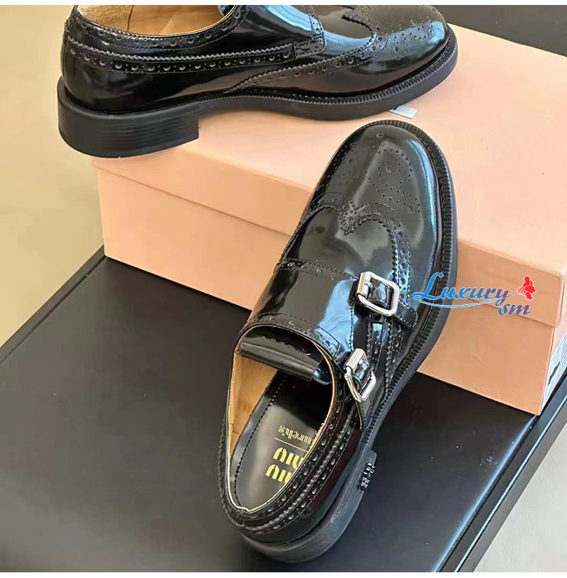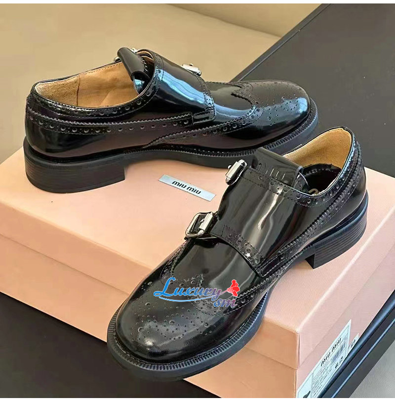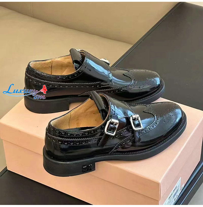 MIUMIU-5E039E 미우미우 블랙 처치스 x 미우미우 더블 몽크 브로그 슈즈 여성용
