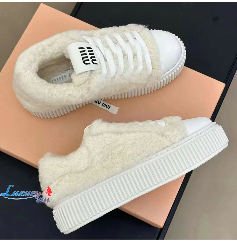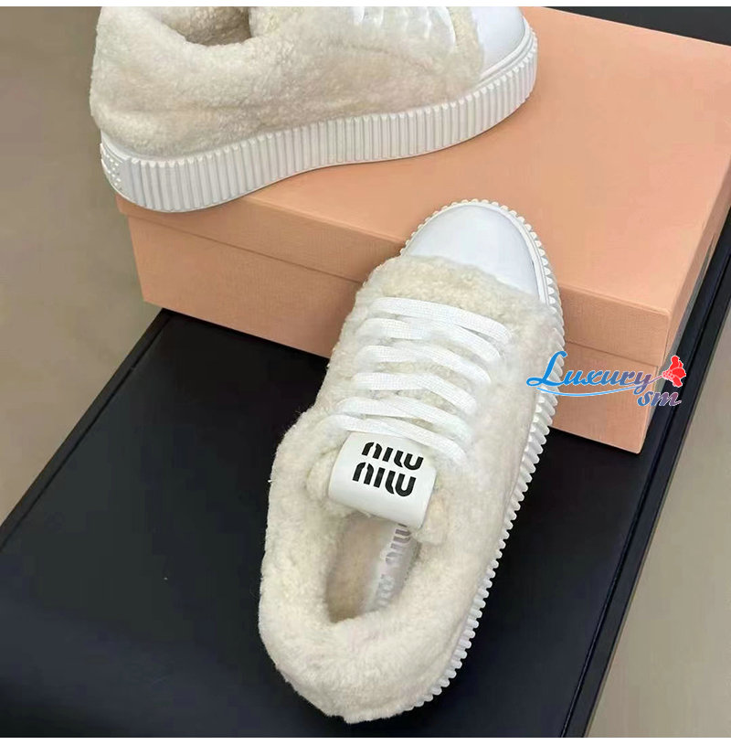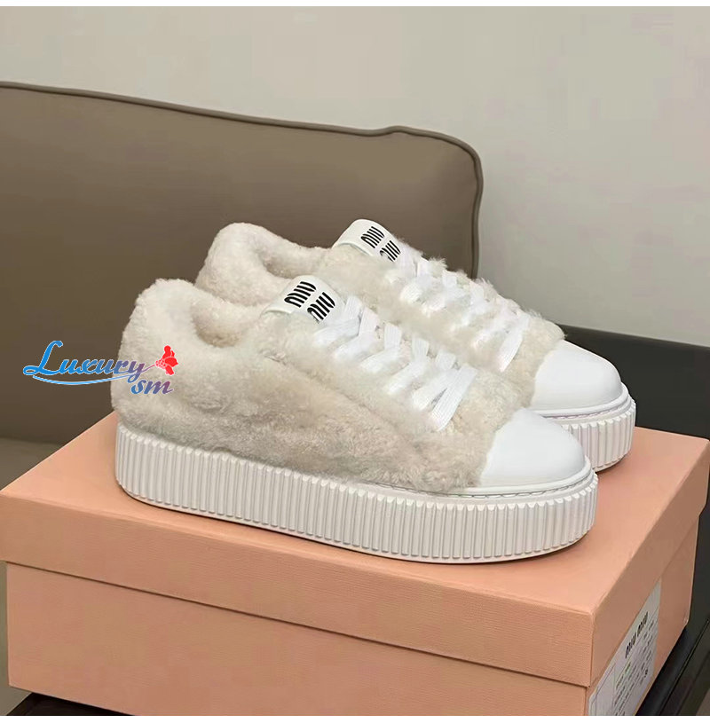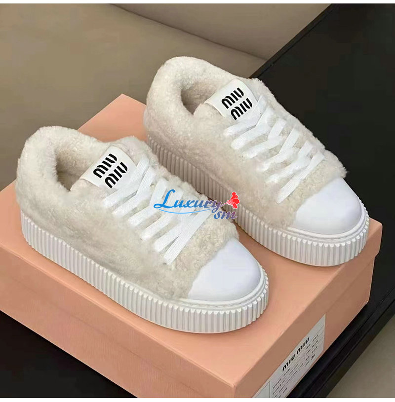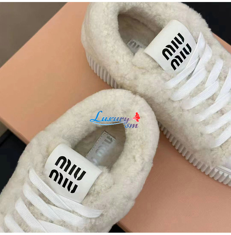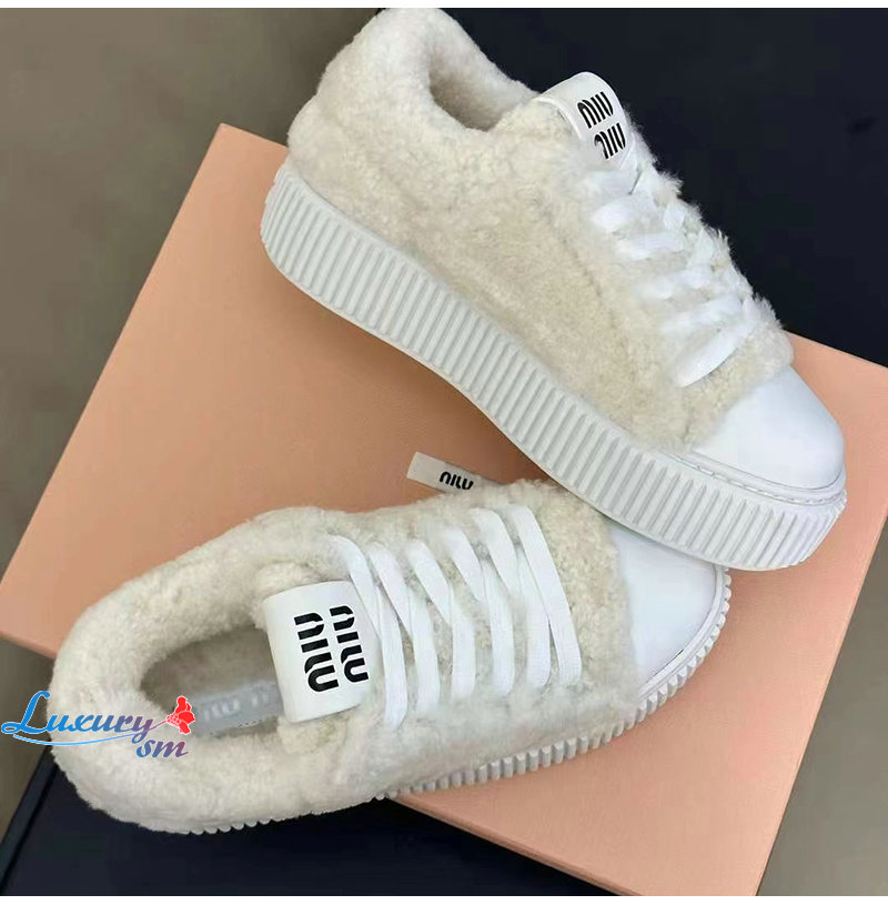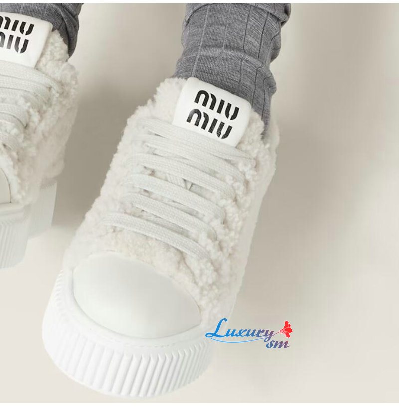 MIUMIU-5E988D 미우미우 화이트 시어링 스니커즈