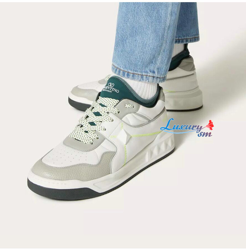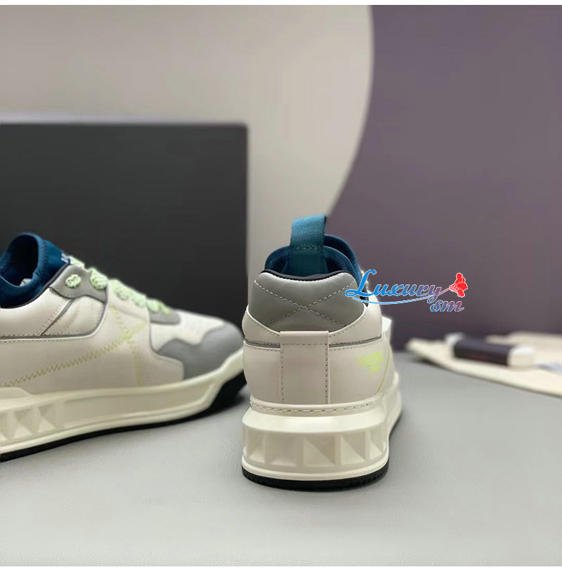 VALENTINO-3Y2S0H2 발렌티노 화이트/그레이 원 스터드 미드탑 스니커즈 남여공용