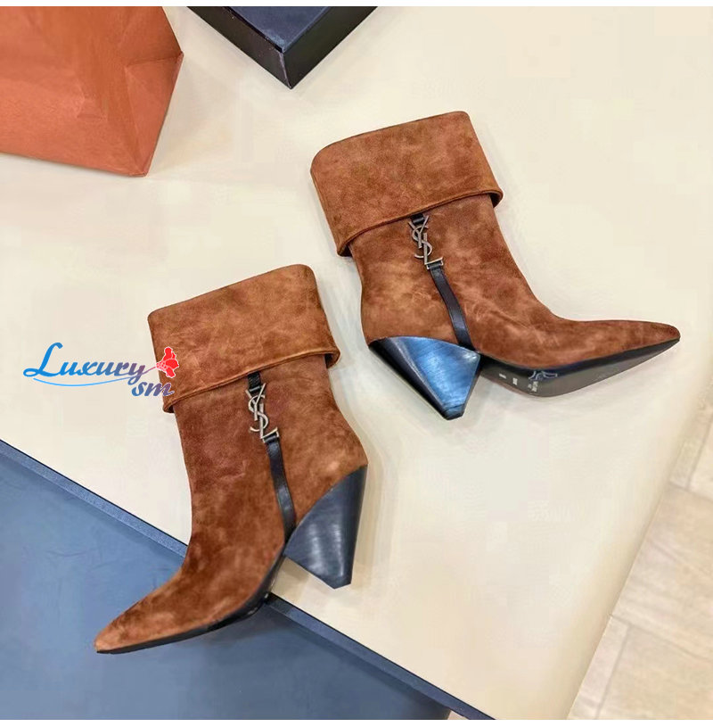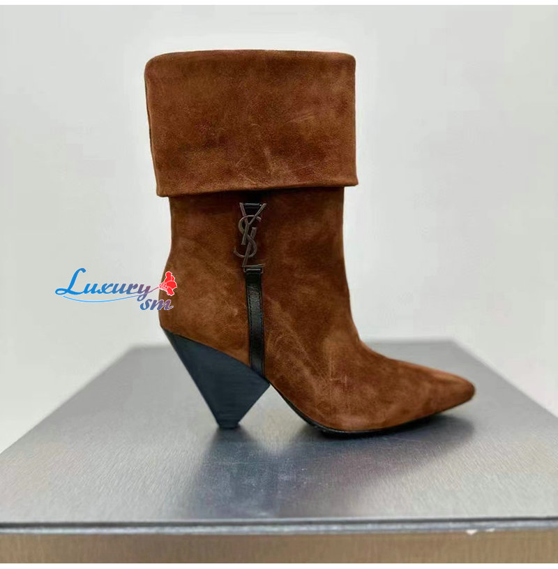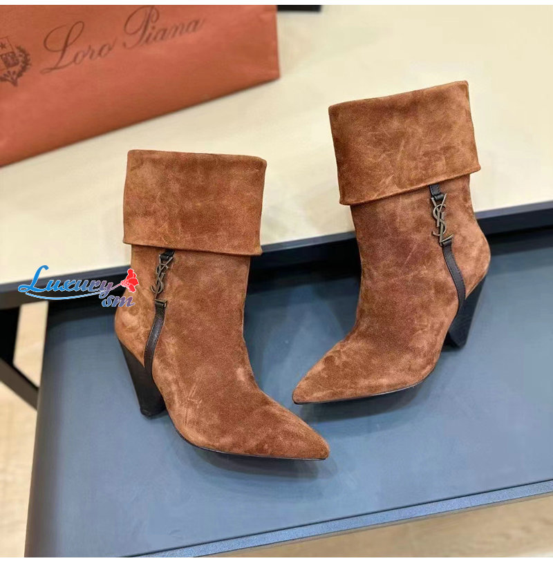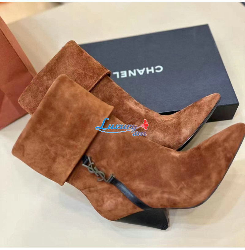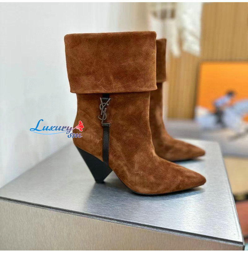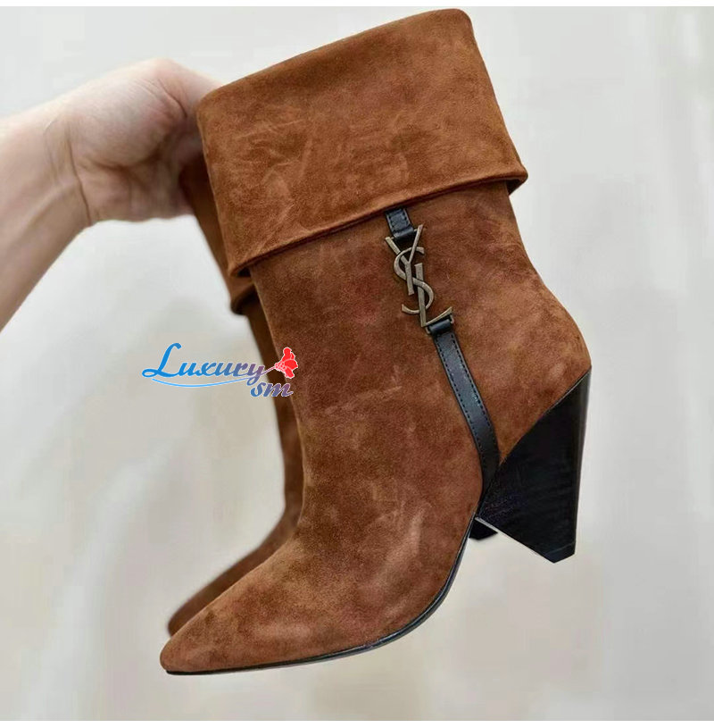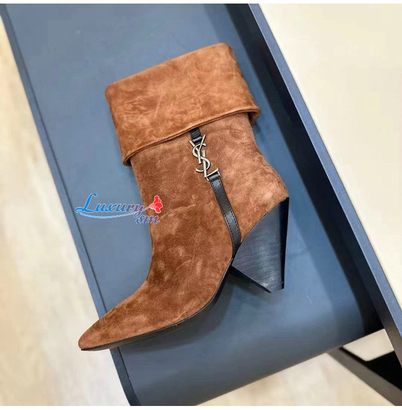 SAINT LAURENT-678534 생 로랑 브라운 스웨이드 NIKI 부티 여성용