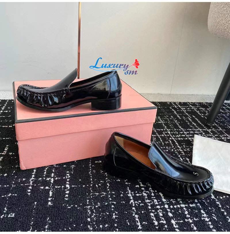 ACNE-아크네 블랙 A & S 자수 가죽 로퍼