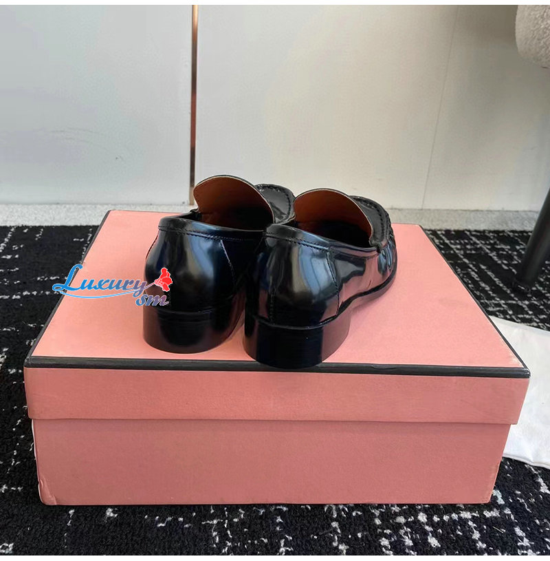 ACNE-아크네 블랙 A & S 자수 가죽 로퍼 여성용