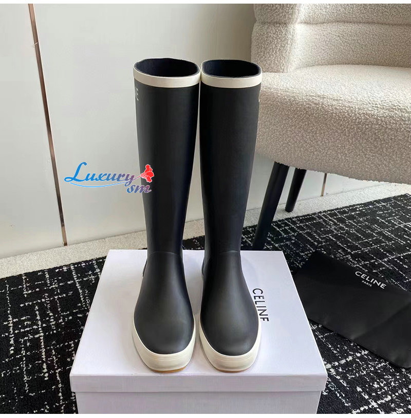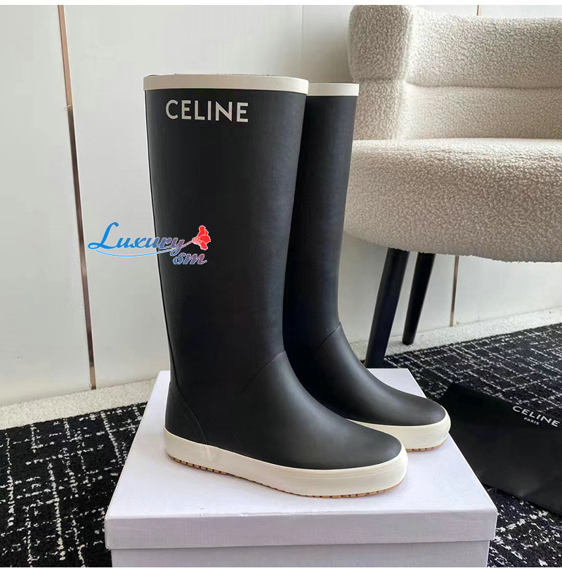 CELINE-345797 셀린느 네이비 러버 미드 부츠 여성용