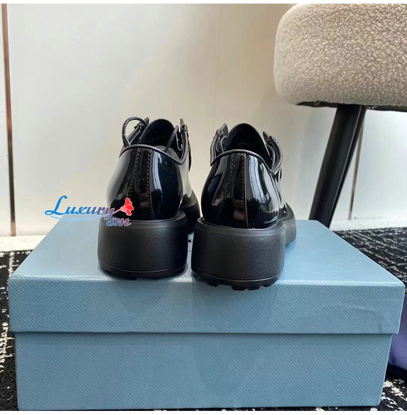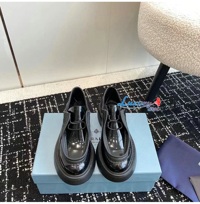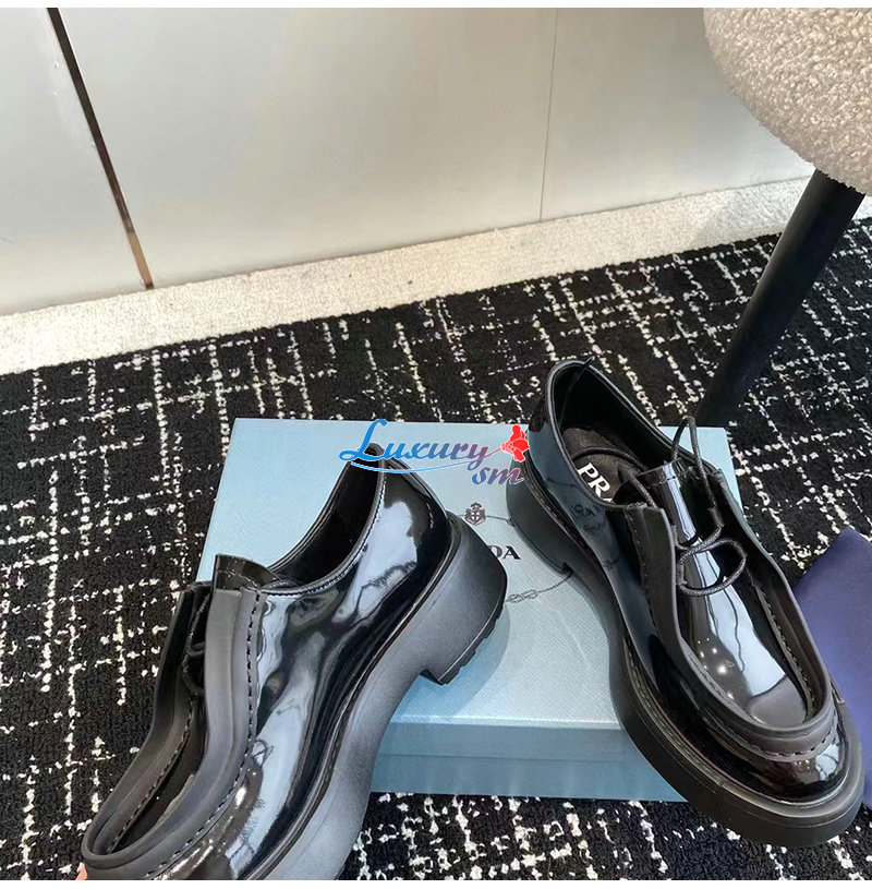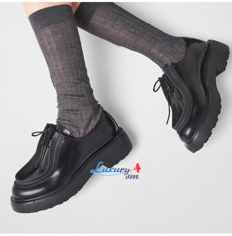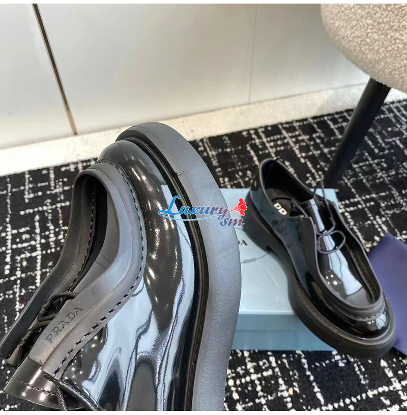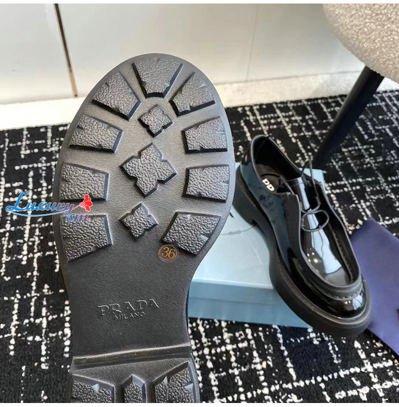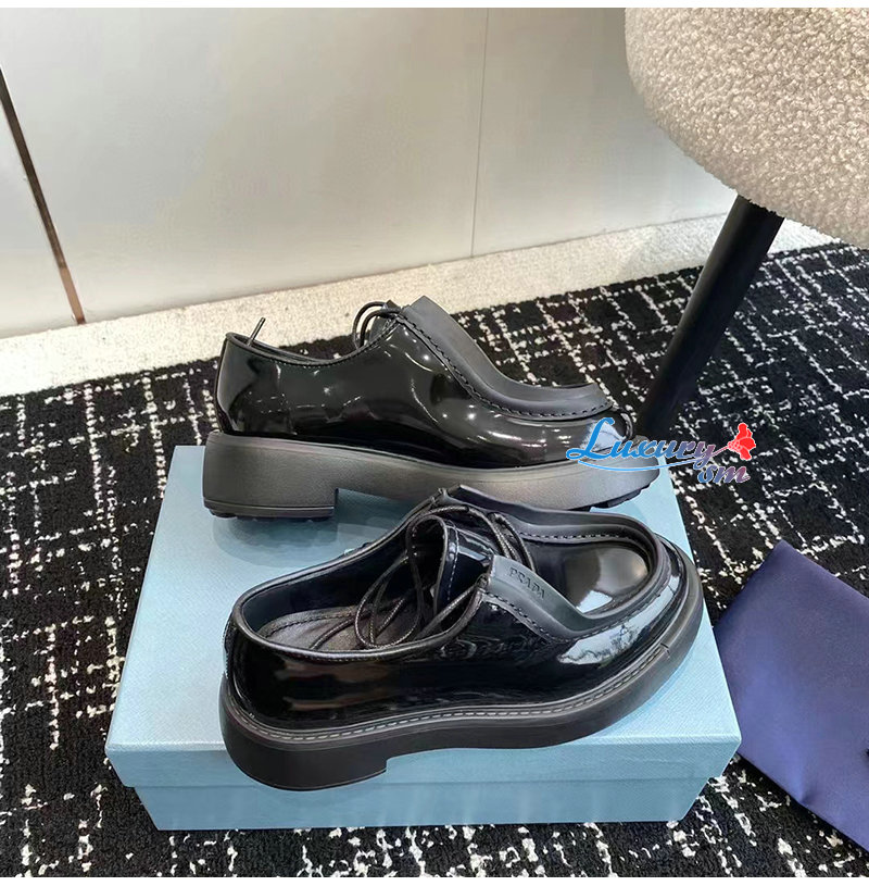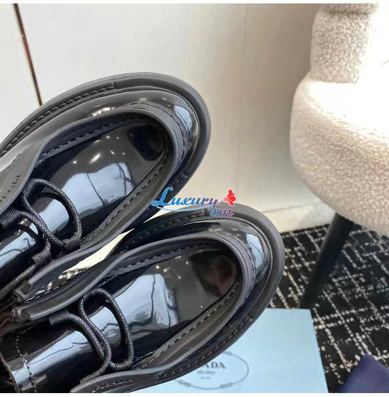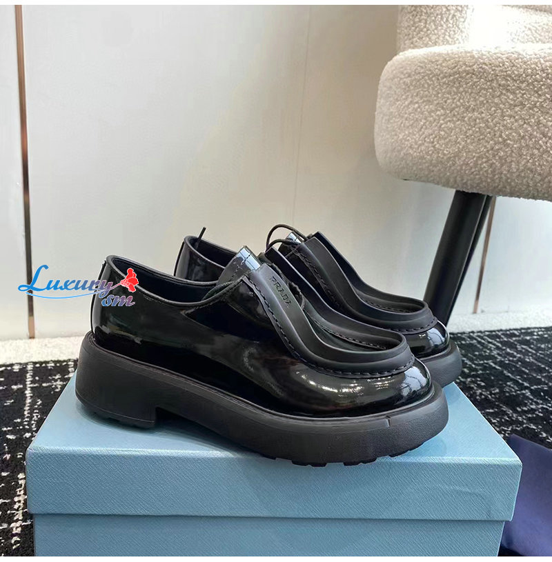 PRADA-1E280N 프라다 블랙 브러시드 가죽 레이스업 슈즈 여성용