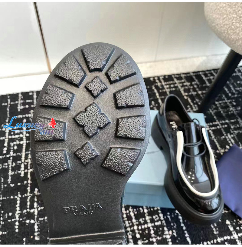 PRADA-1E280N 프라다 블랙/화이트 브러시드 가죽 레이스업 슈즈 여성용