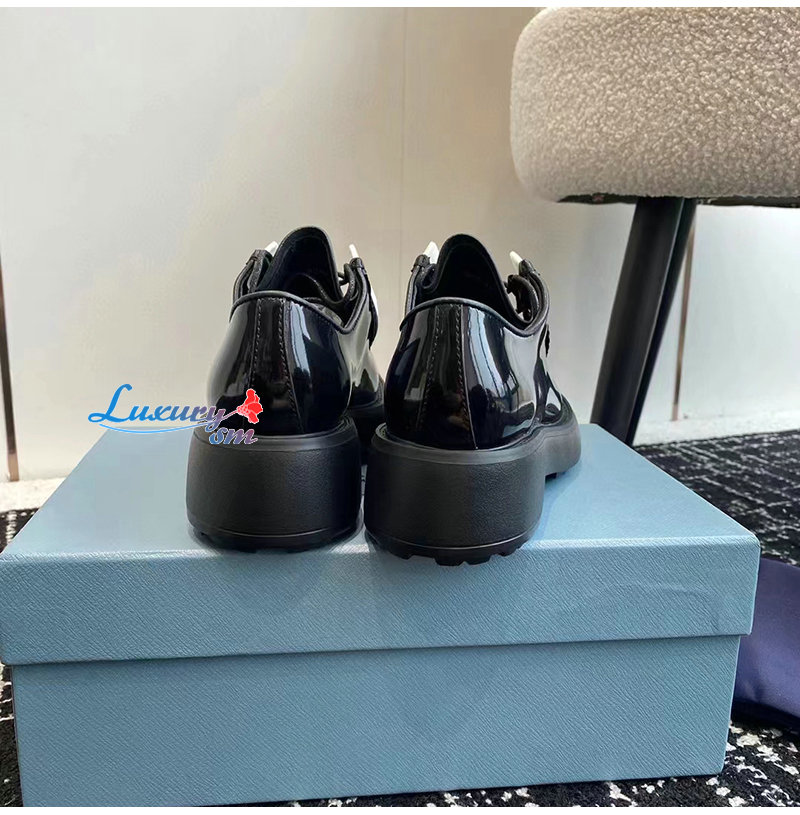 PRADA-1E280N 프라다 블랙 브러시드 가죽 레이스업 슈즈 여성용