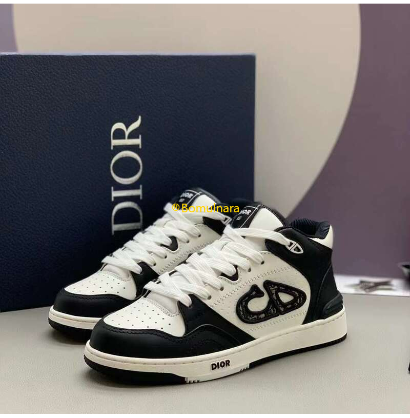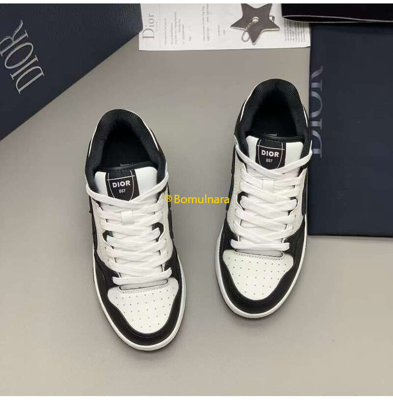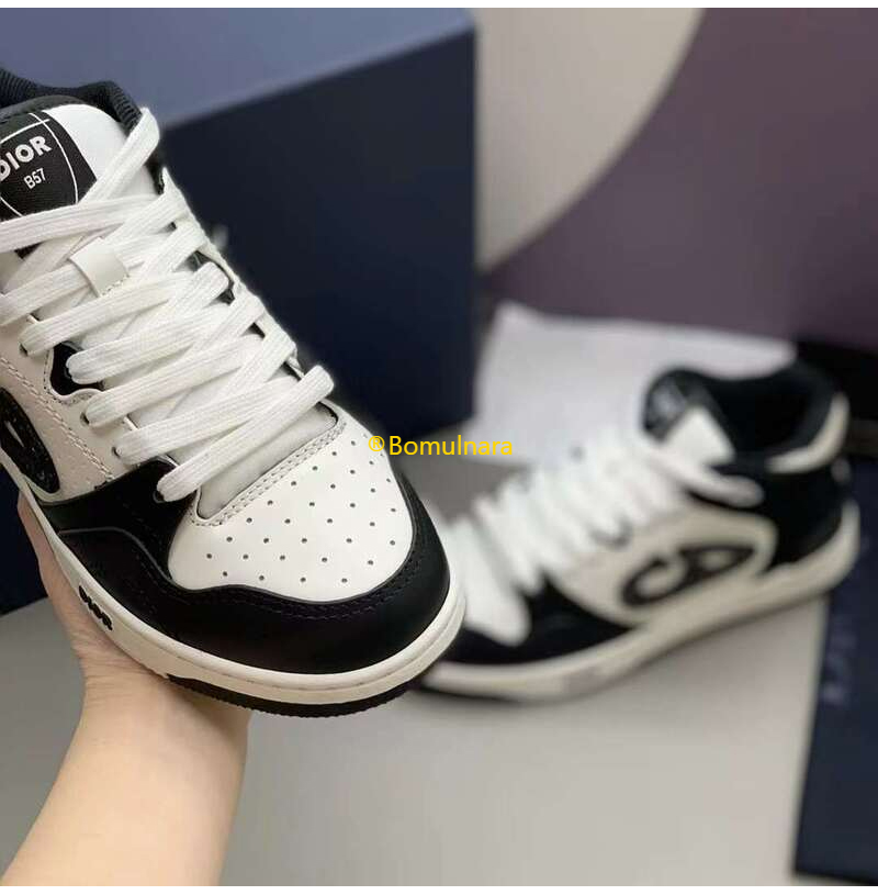 DIOR-3SH141 디올 블랙/화이트 카프스킨 B57 미드탑 스니커즈 남녀공용