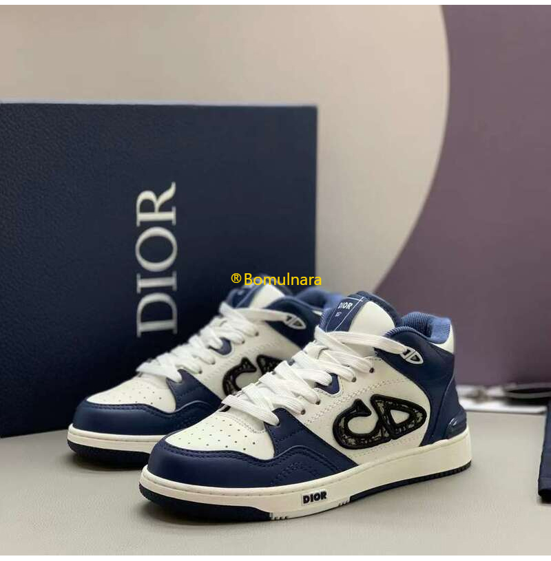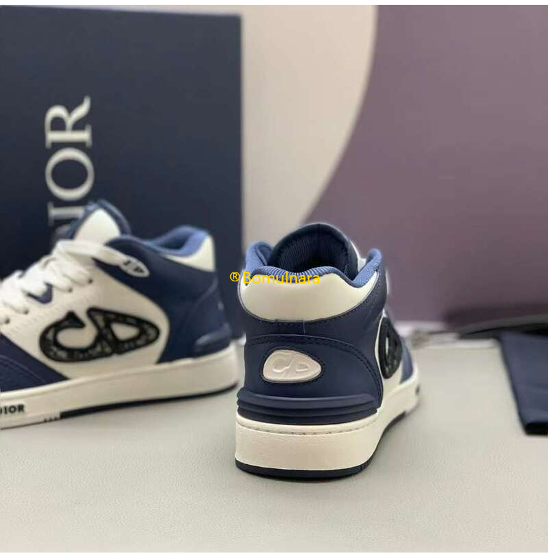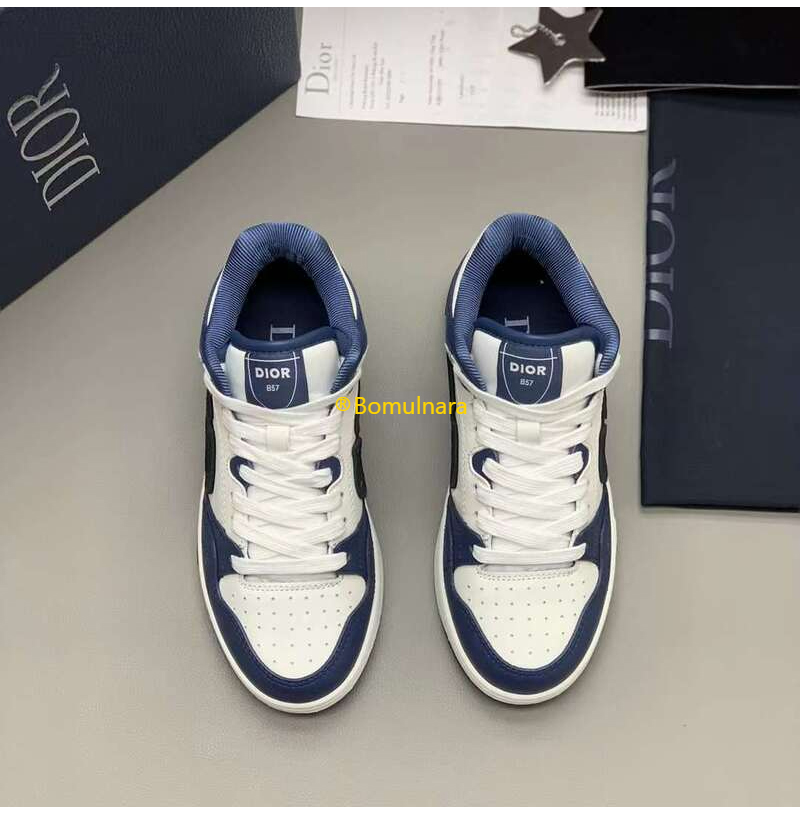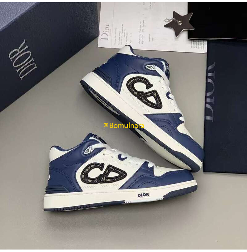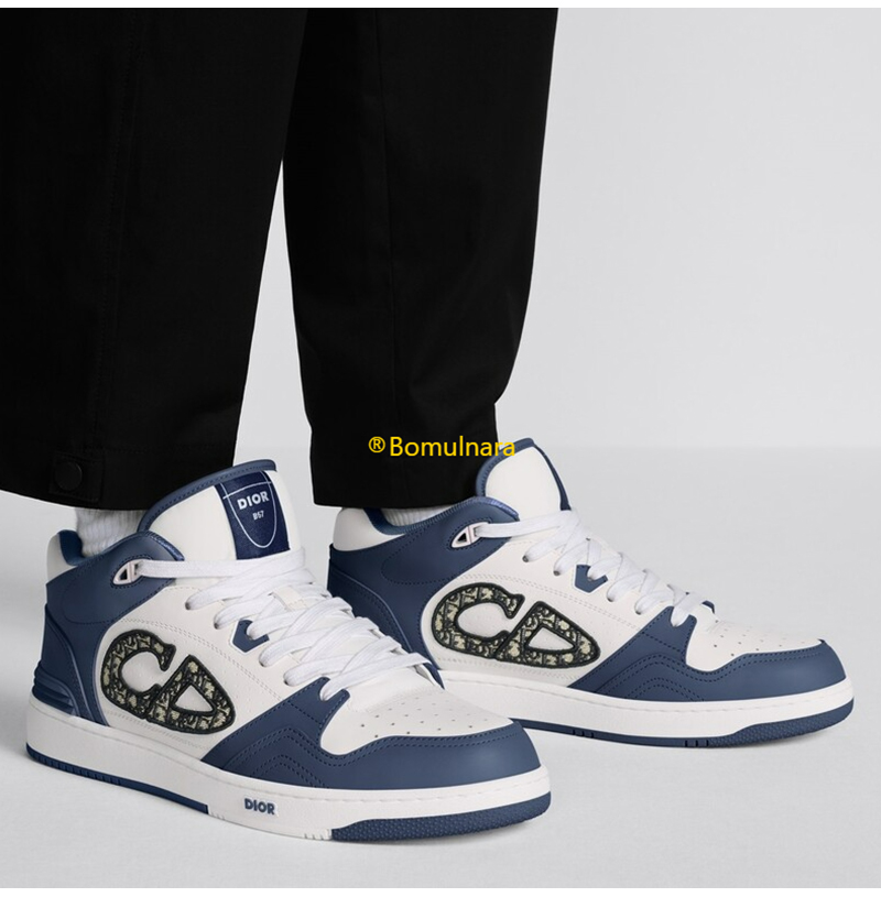 DIOR-3SH141 디올 네이비블루/화이트 카프스킨 B57 미드탑 운동화 남녀공용