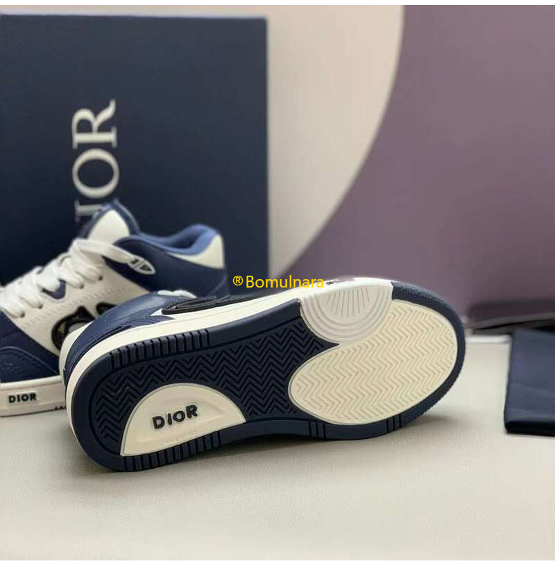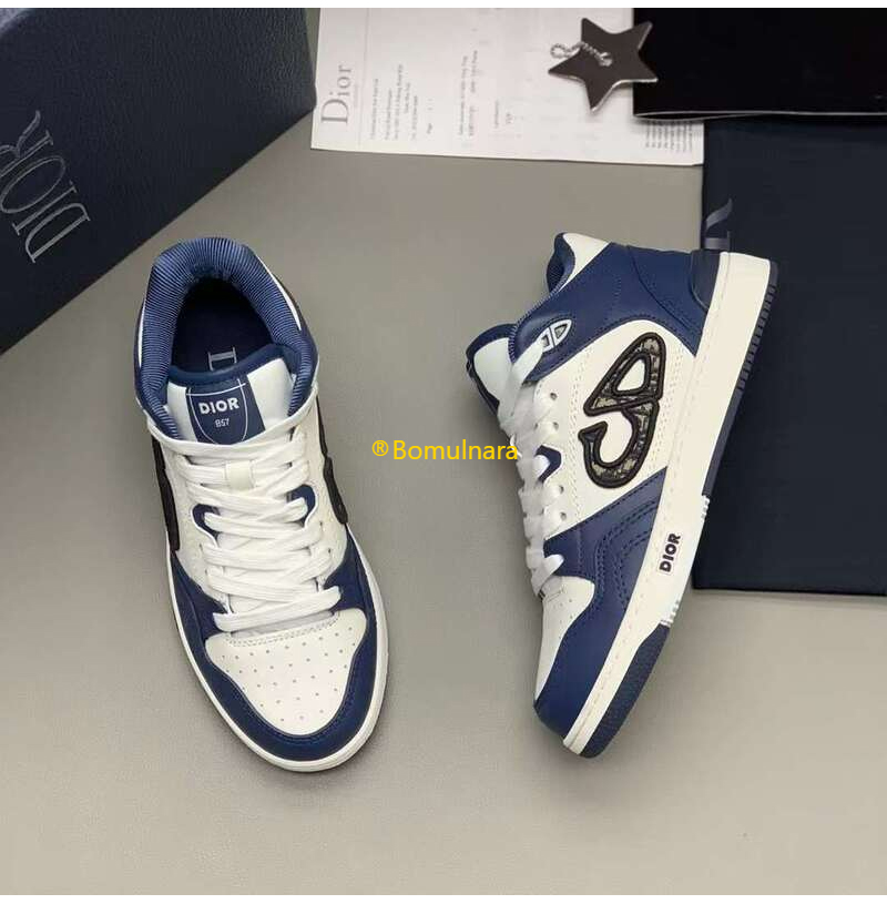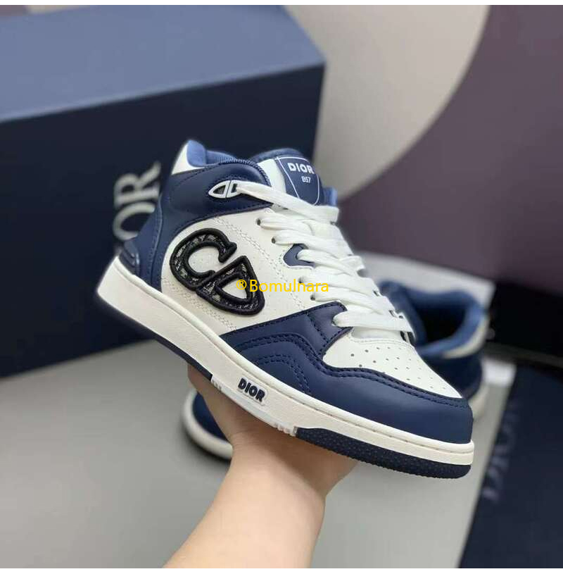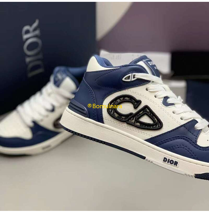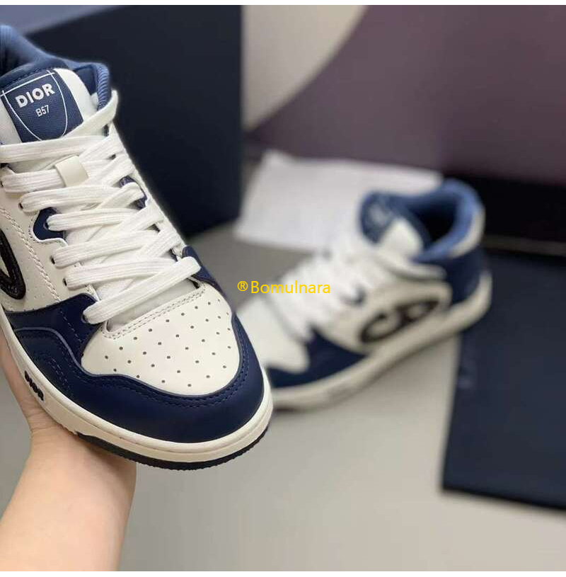 DIOR-3SH141 디올 네이비블루/화이트 카프스킨 B57 미드탑 운동화 남녀공용