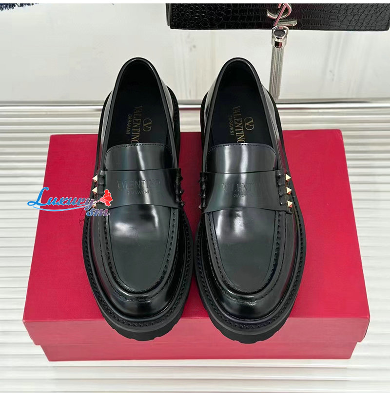 VALENTINO-3W0S0HW 발렌티노 블랙 락스터드 송아지 가죽 로퍼 여성용