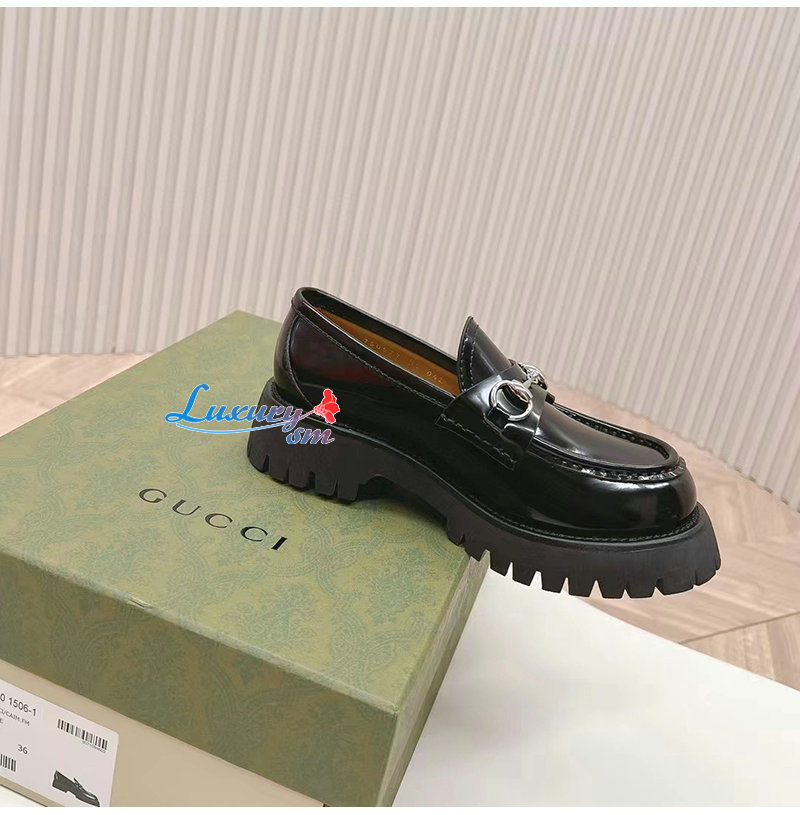 GUCCI-764211 1000 구찌 블랙 가죽 홀스빗 로퍼 여성용