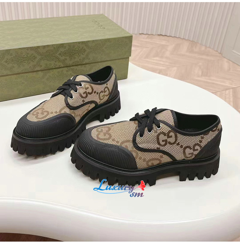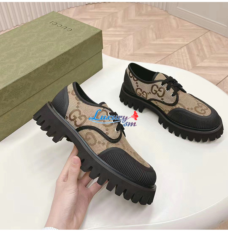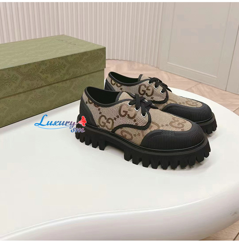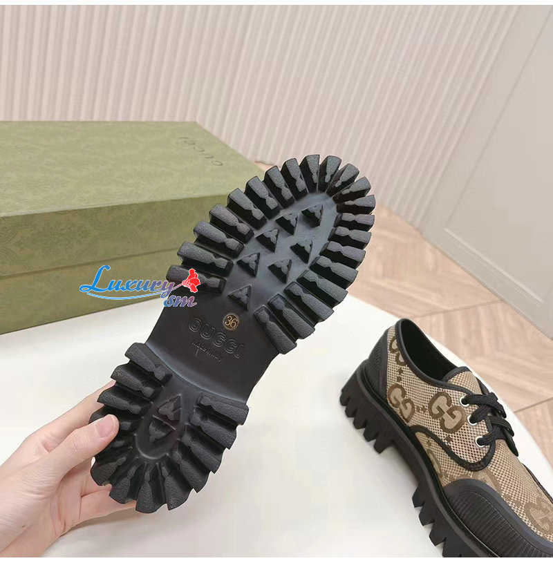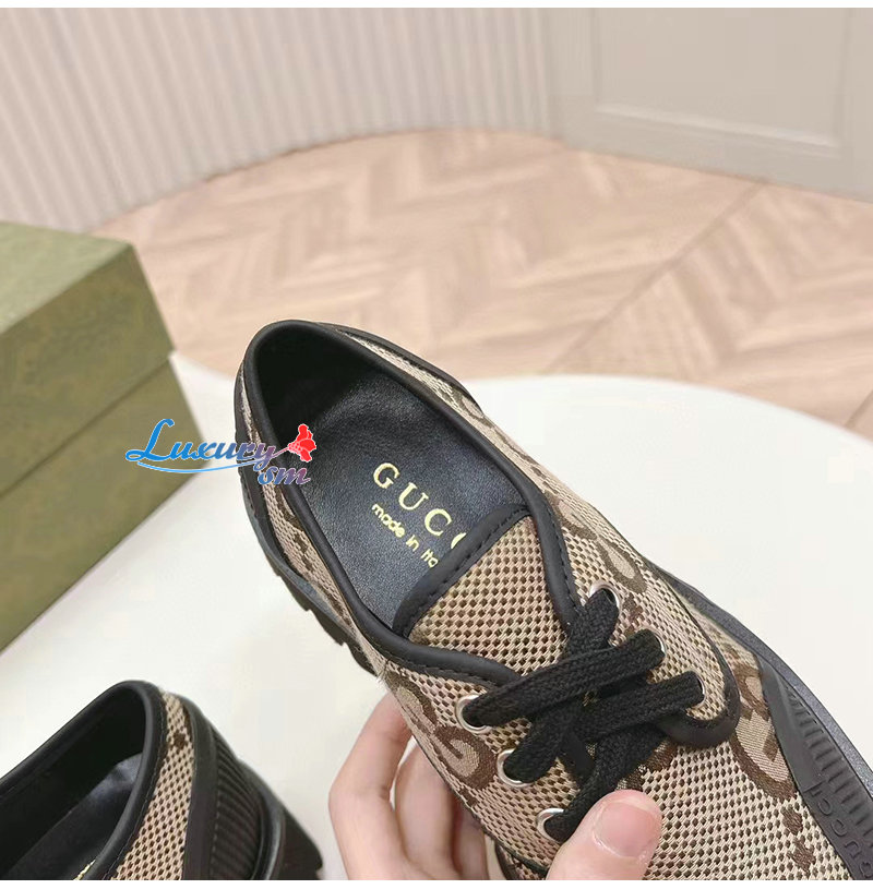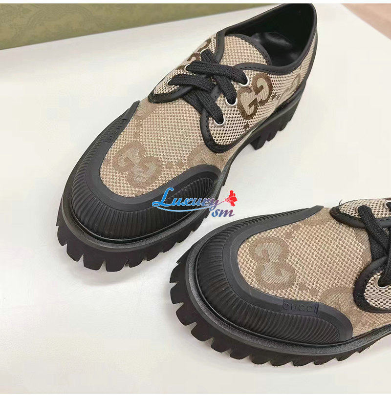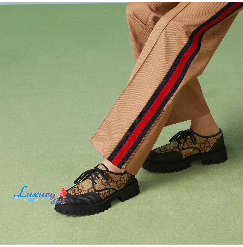 GUCCI-751708 2552 구찌 베이지/블랙 맥시 GG 레이스업 슈즈 여성용