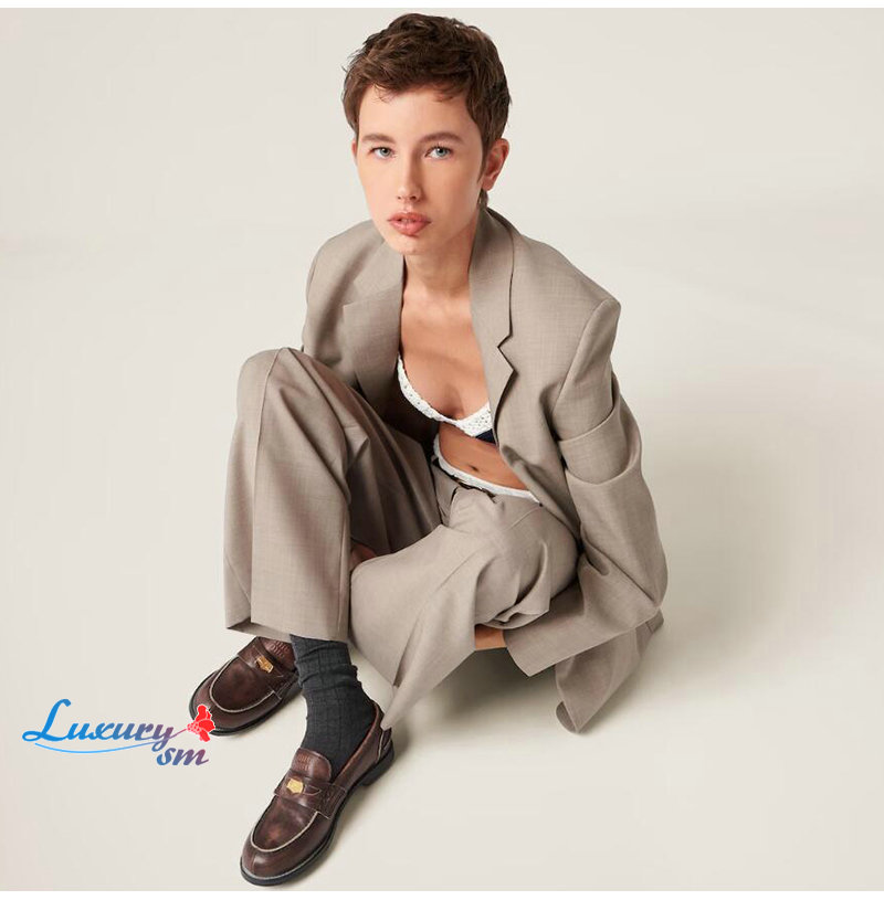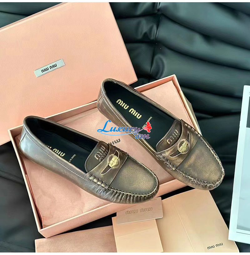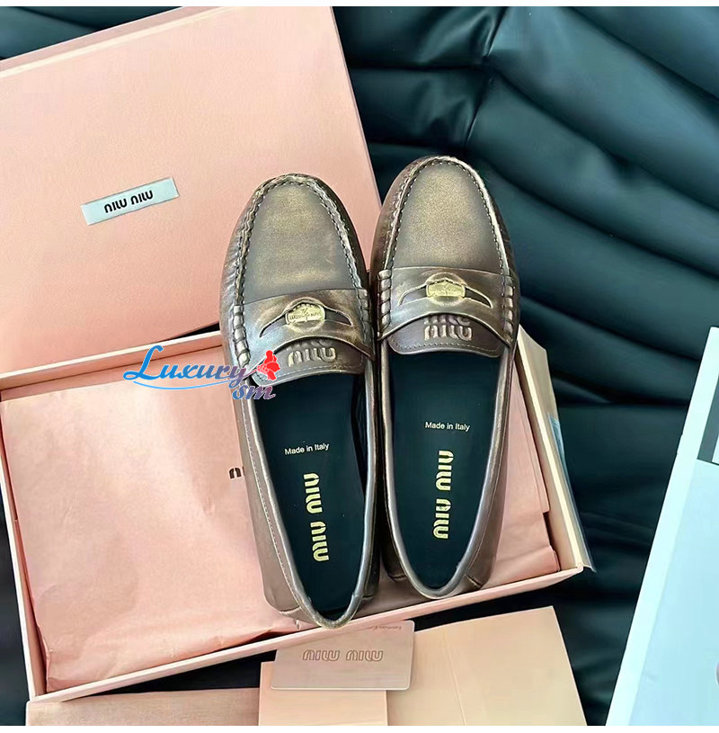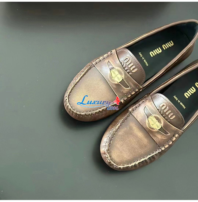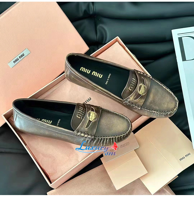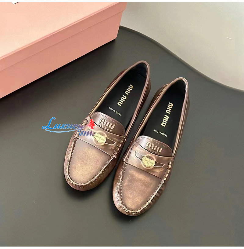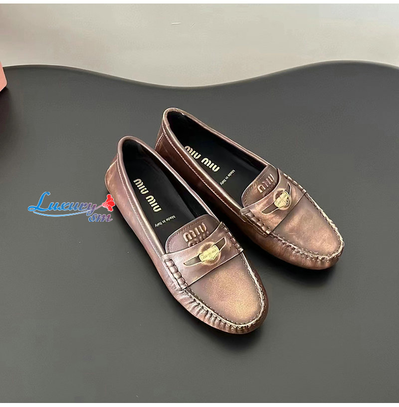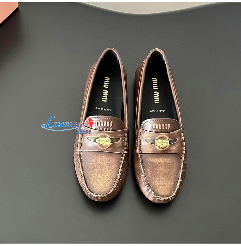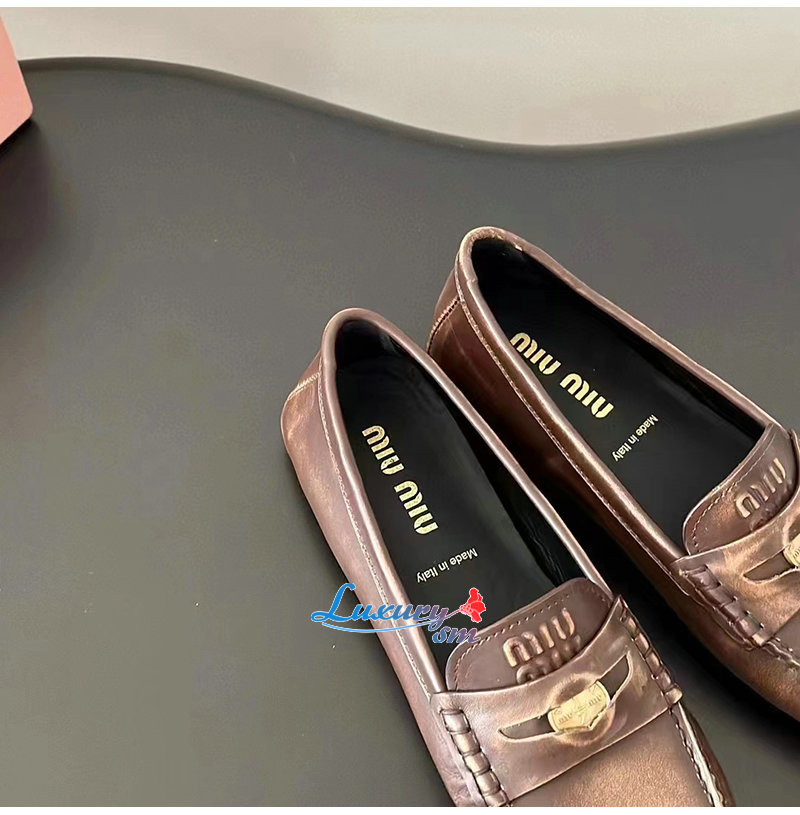 MIUMIU-5D773D 미우미우 브라운 가죽 페니 로퍼 여성용