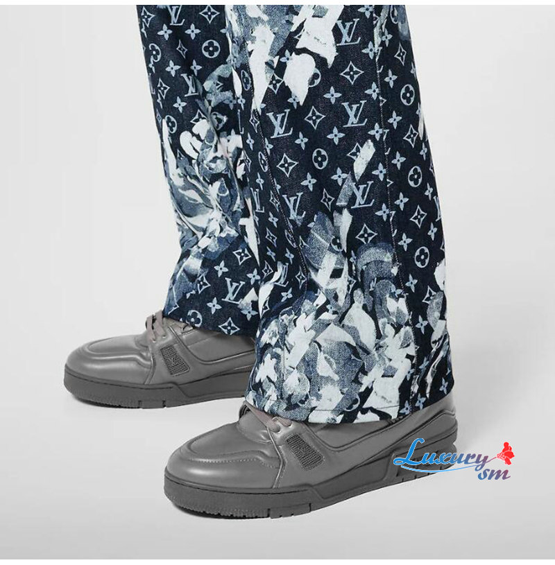 LOUIS VUITT**-1A9ZIE 루이비통 블루 모노그램 데님 LV 트레이너 스니커즈