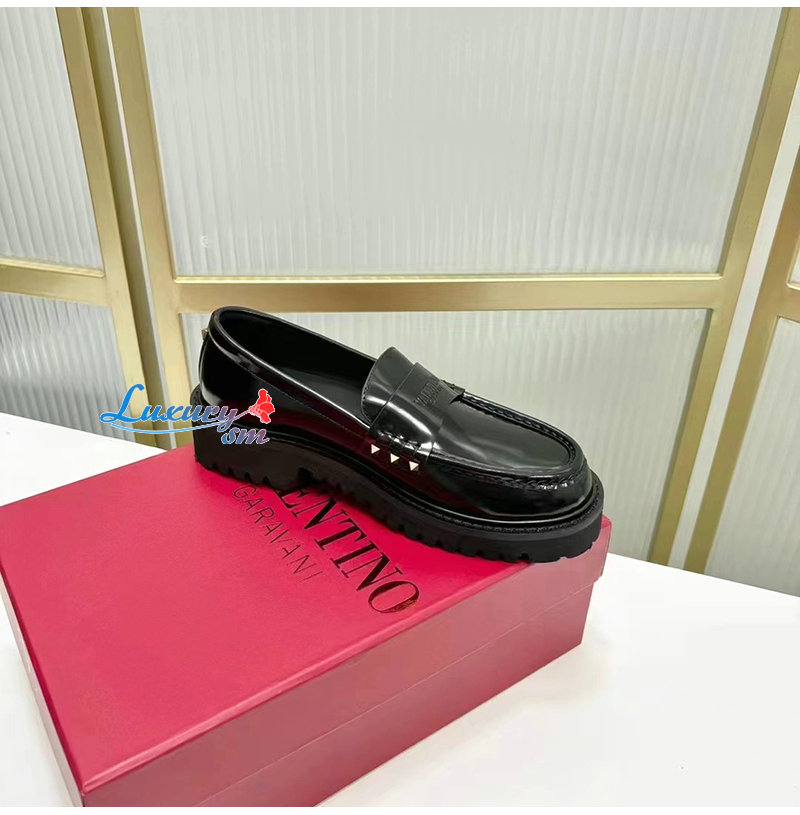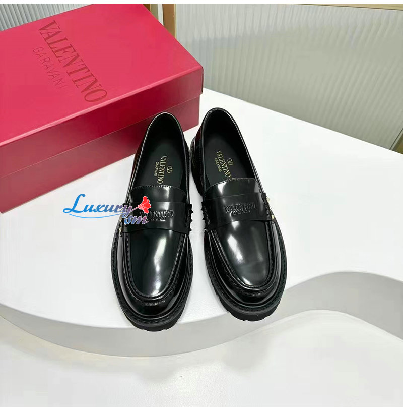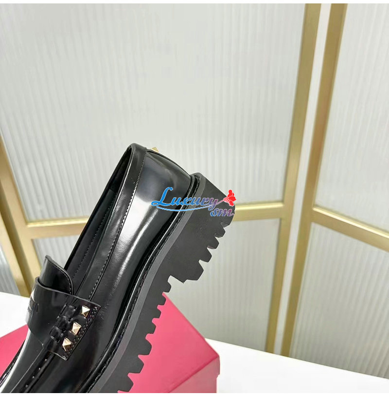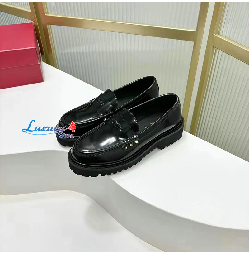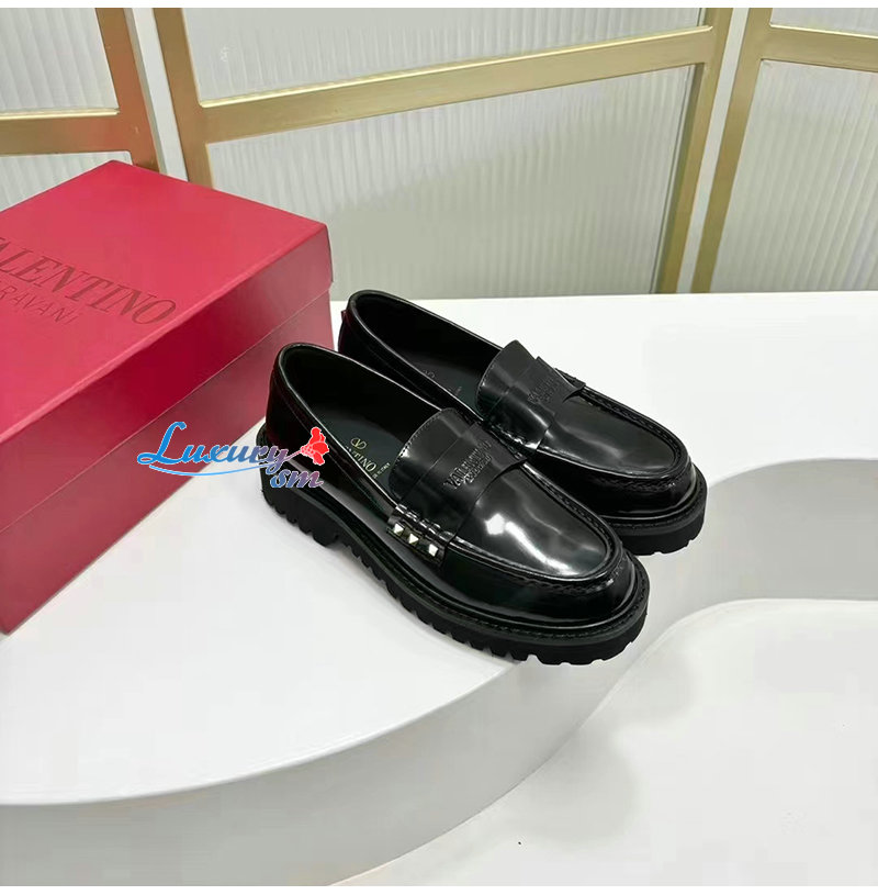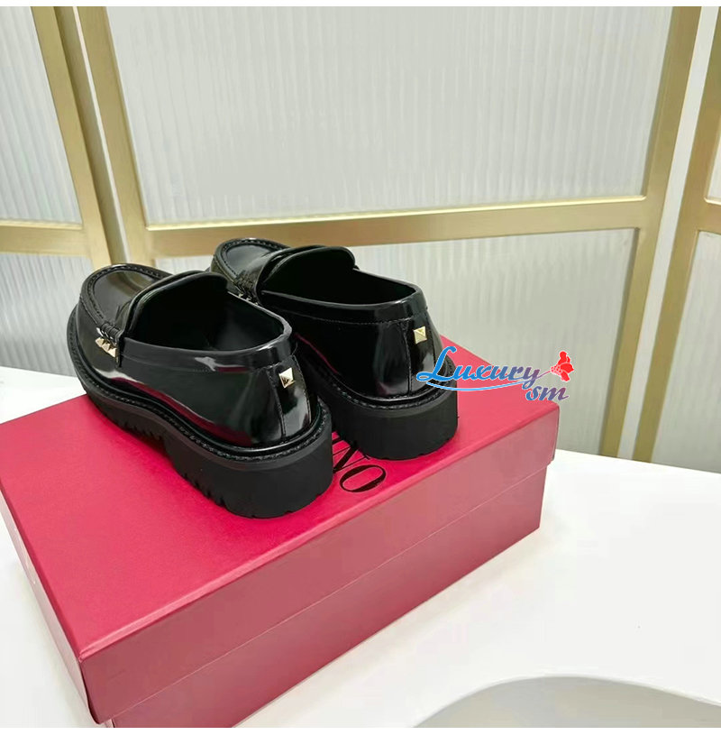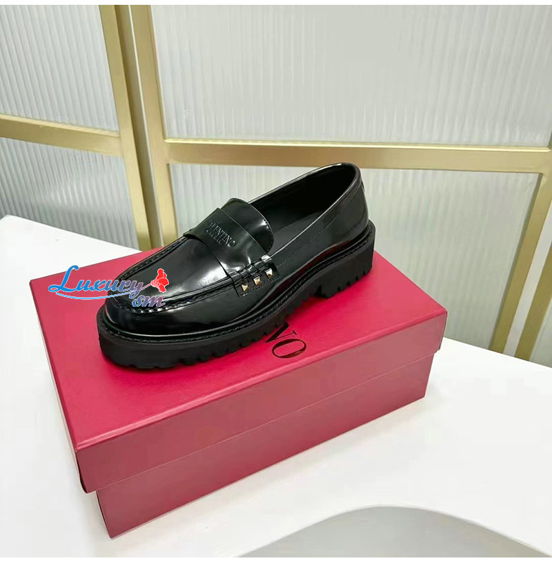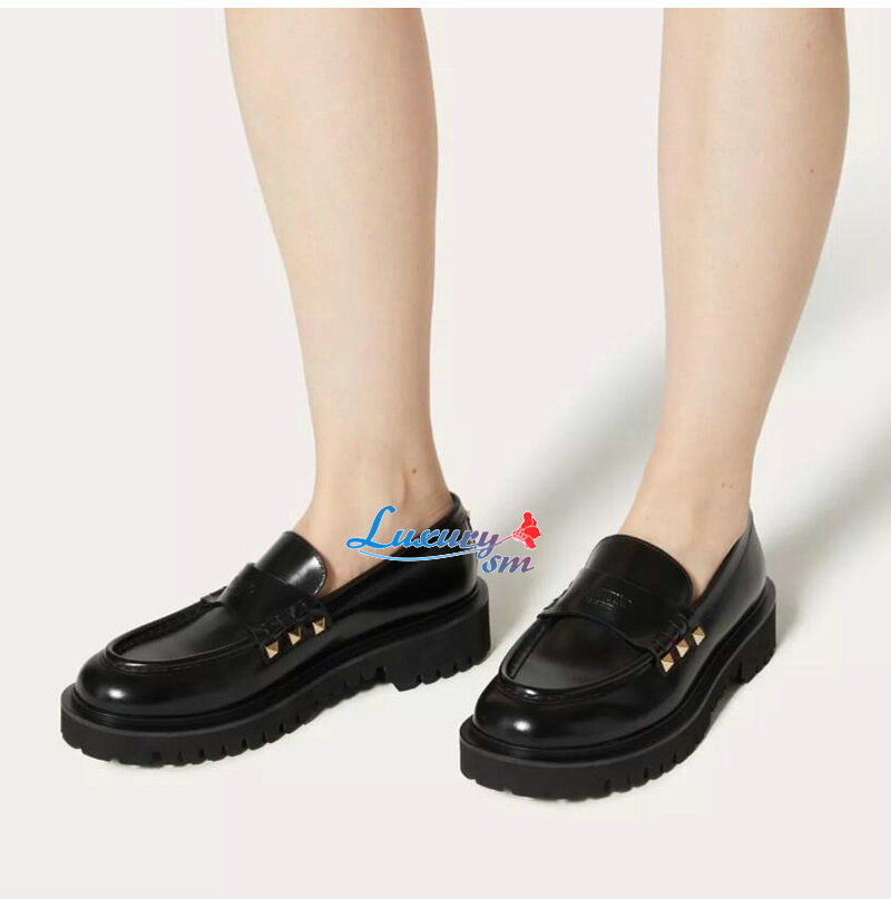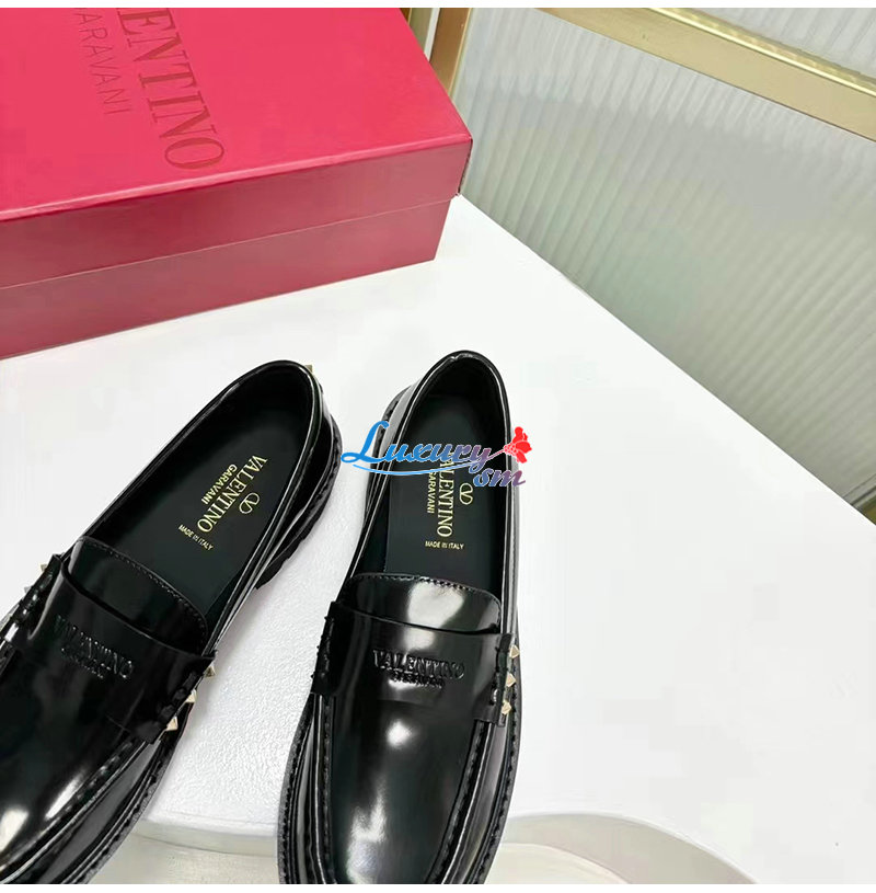 VALENTINO-5W2S0H 발렌티노 블랙 락스터드 송아지 가죽 로퍼 여성용