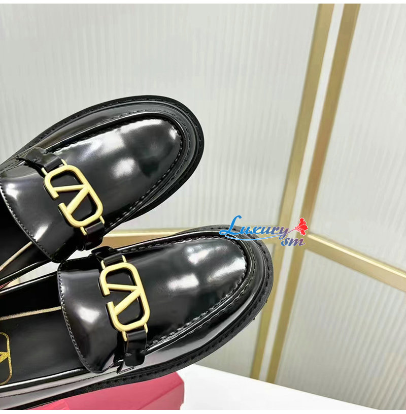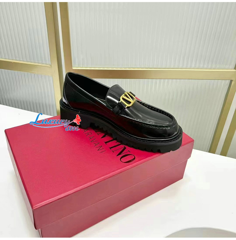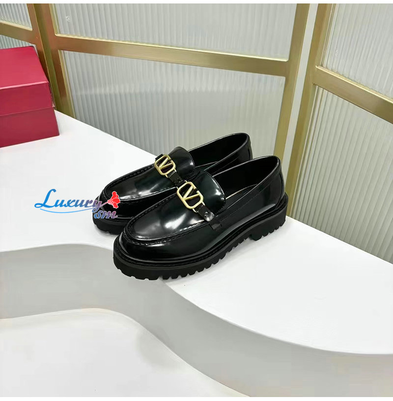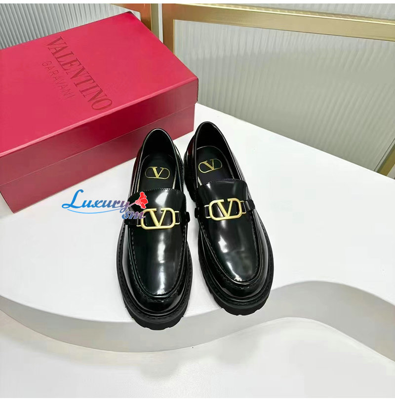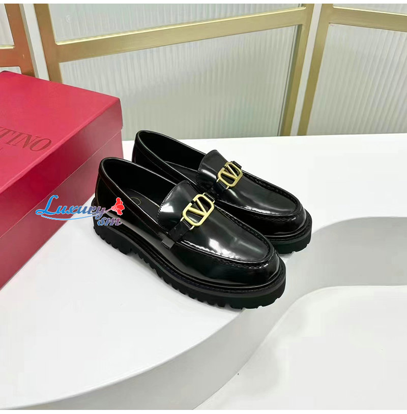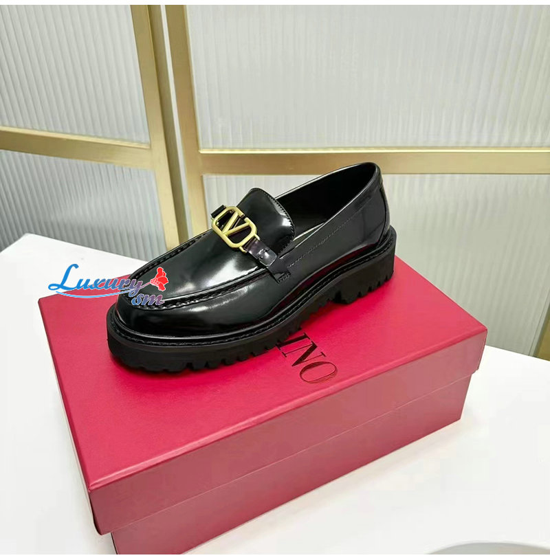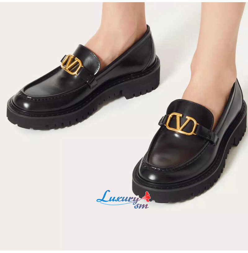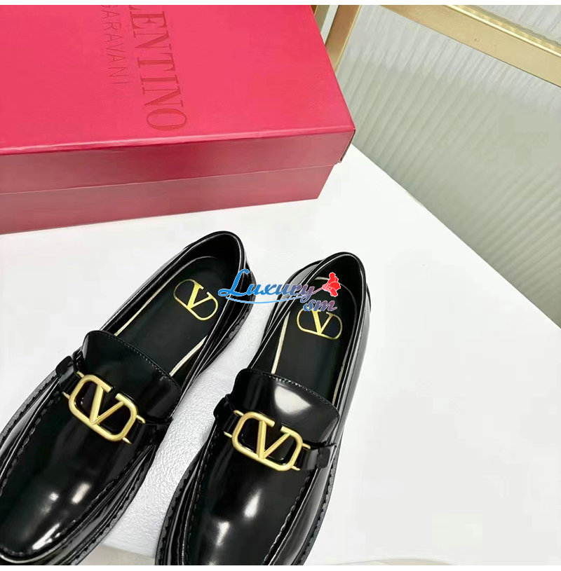 VALENTINO-5W2S0E 발렌티노 블랙 브이로고 시그니처 송아지 가죽 로퍼 여성용