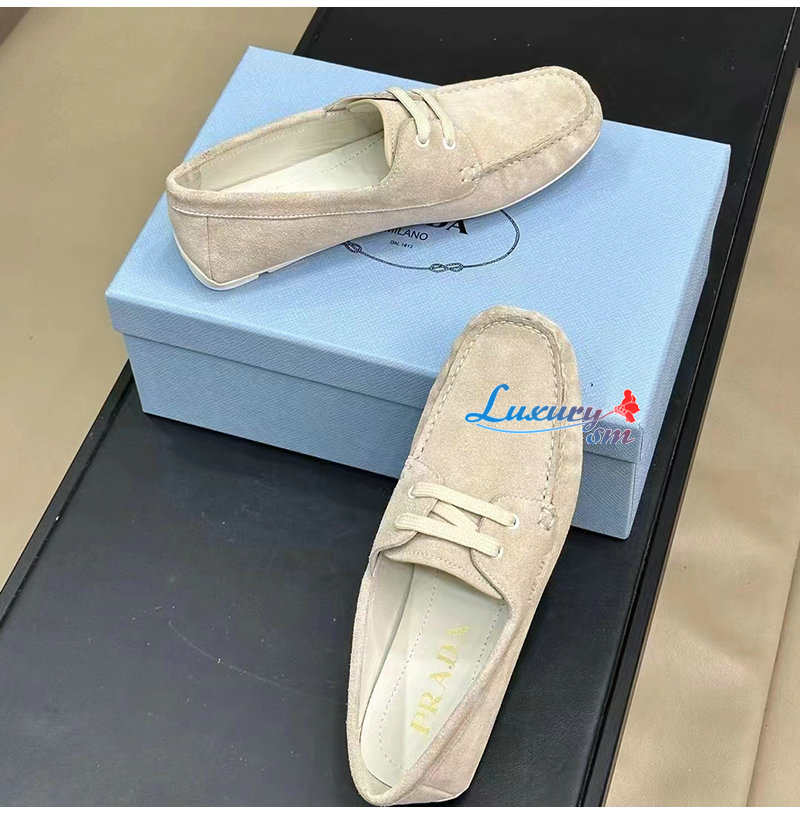 PRADA-1DD078 프라다 베이지 스웨이드 드라이빙 슈즈 여성용