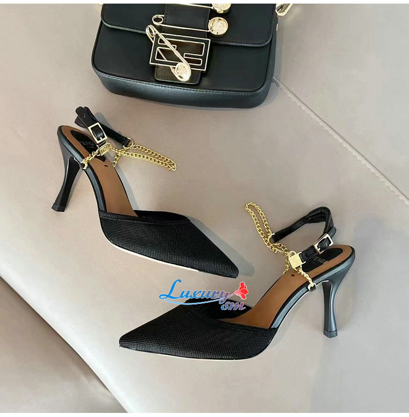 FENDI-8J8446 펜디 블랙 콜리브리 라이트 하이힐 슬링백