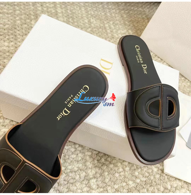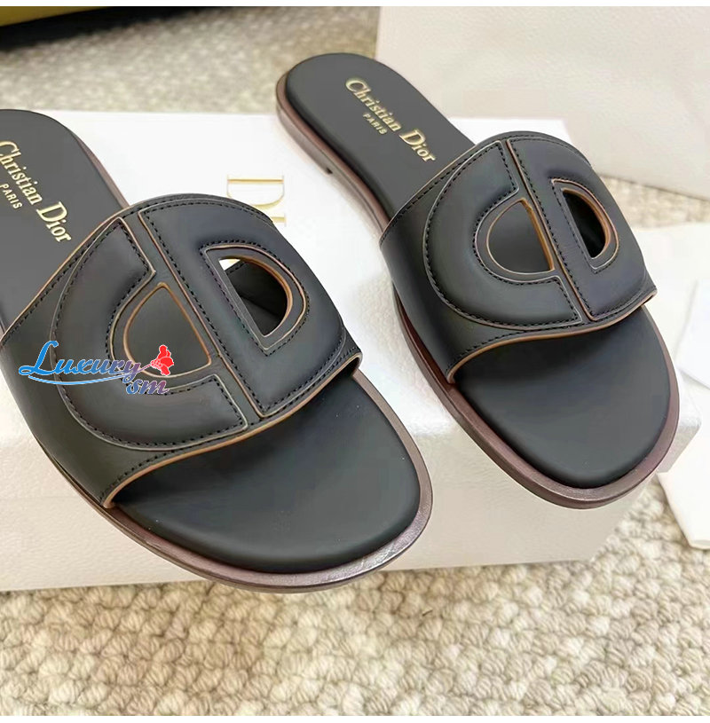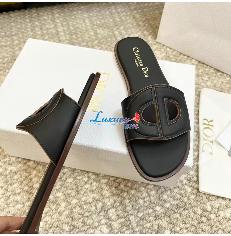 DIOR-KCO049 디올 블랙 송아지 가죽 D-Club 뮬 여성용