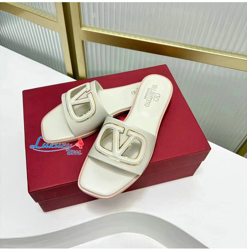 VALENTINO-4W2S0I 발렌티노 골드 브이로고 컷아웃 슬라이드 샌들 여성용