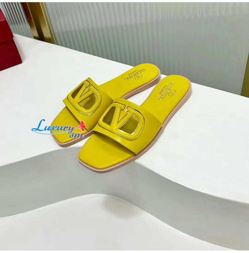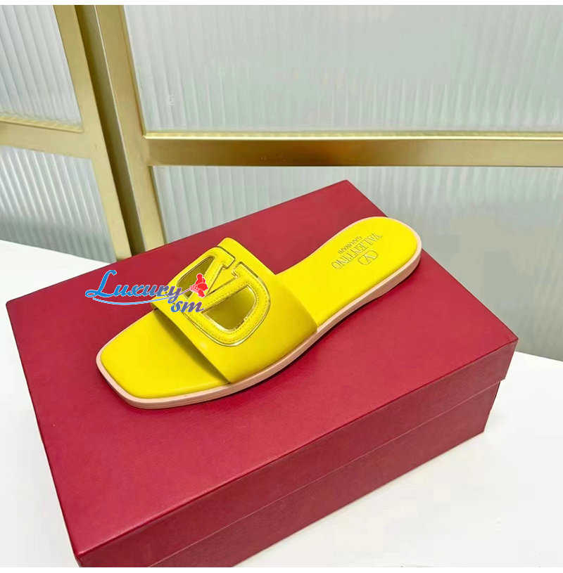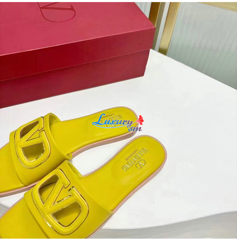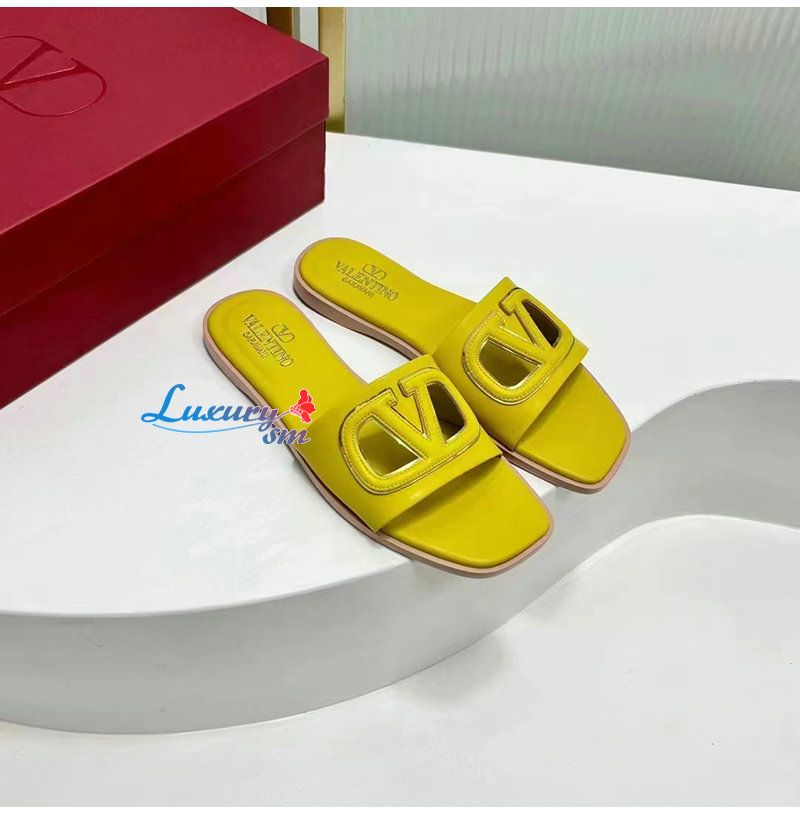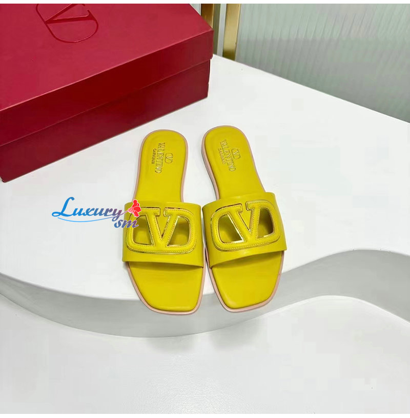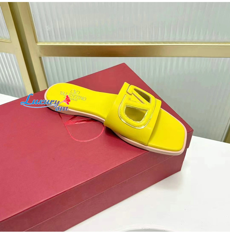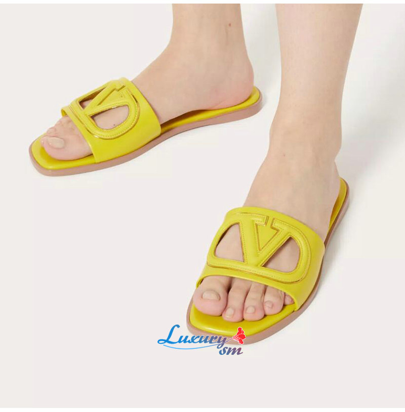 VALENTINO-4W2S0I 발렌티노 옐로우 브이로고 컷아웃 슬라이드 샌들 여성용