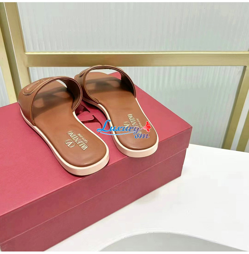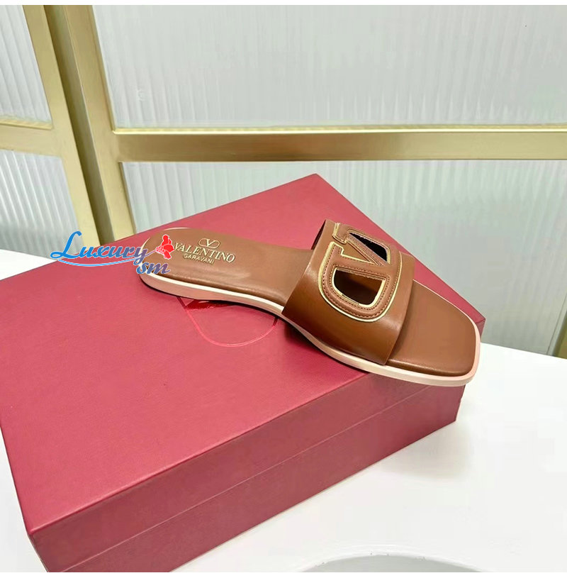 VALENTINO-4W2S0I 발렌티노 브라운 브이로고 컷아웃 슬라이드 샌들 여성용