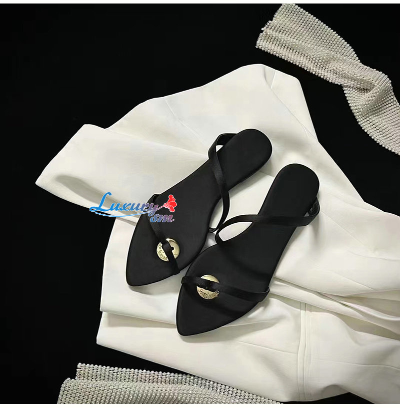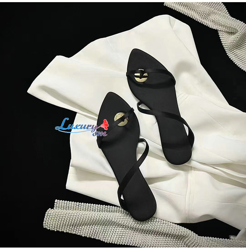 SAINT LAURENT-776130 생 로랑 블랙 새틴 크레이프 TANGER 슬라이드