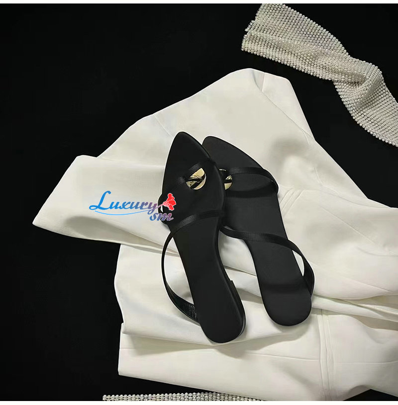 슬라이드 샌들 포인티드 아몬드 토, 비대칭 아치