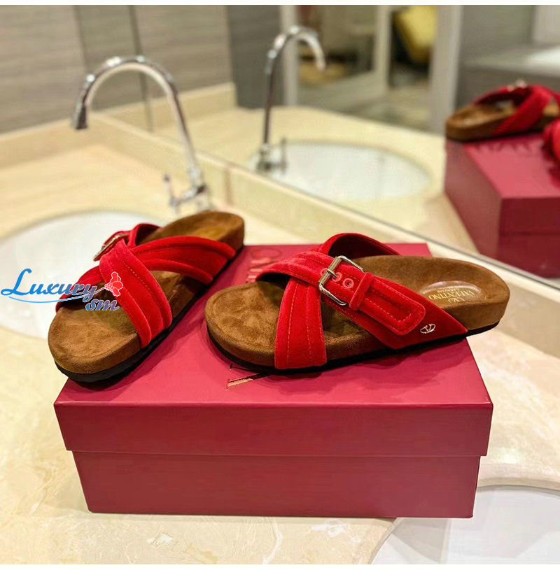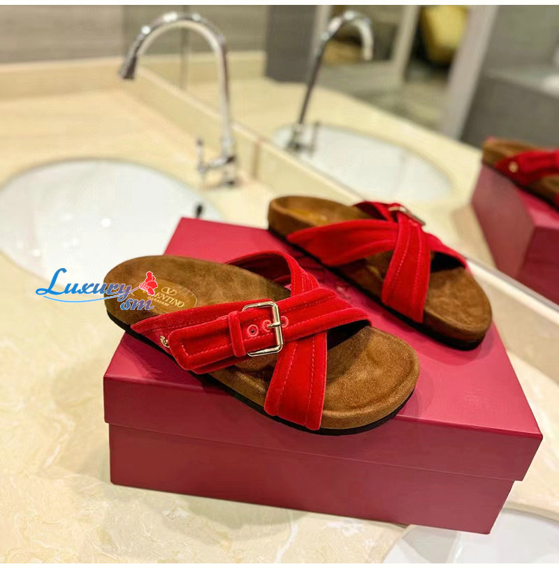 VALENTINO-4W0S0IZ 발렌티노 레드 슬라이드 퍼스프렌드 벨벳 샌들 남여공용