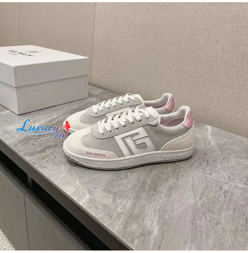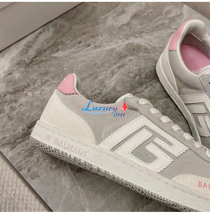 BALMAIN-DN1VI735 발망 화이트/핑크 스웨이드 Swan 스니커즈 남여공용
