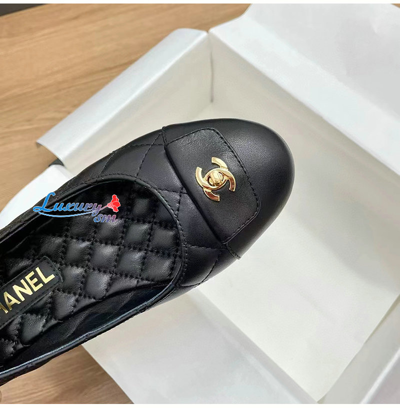 CHANEL-G45879 샤넬 블랙 카프스킨 플랫 슈즈