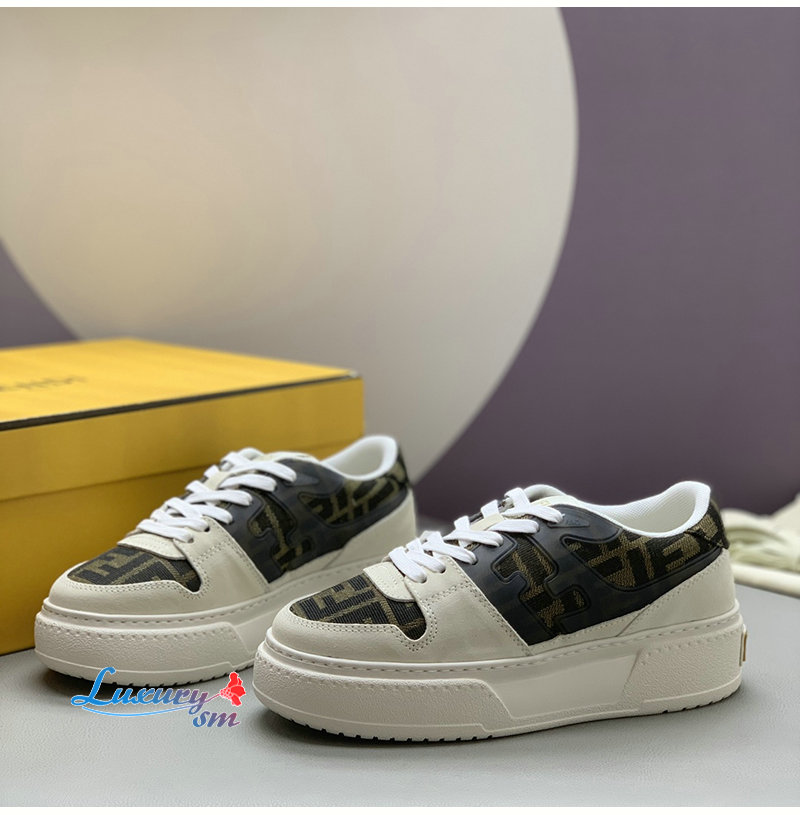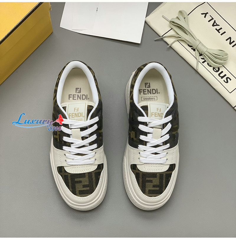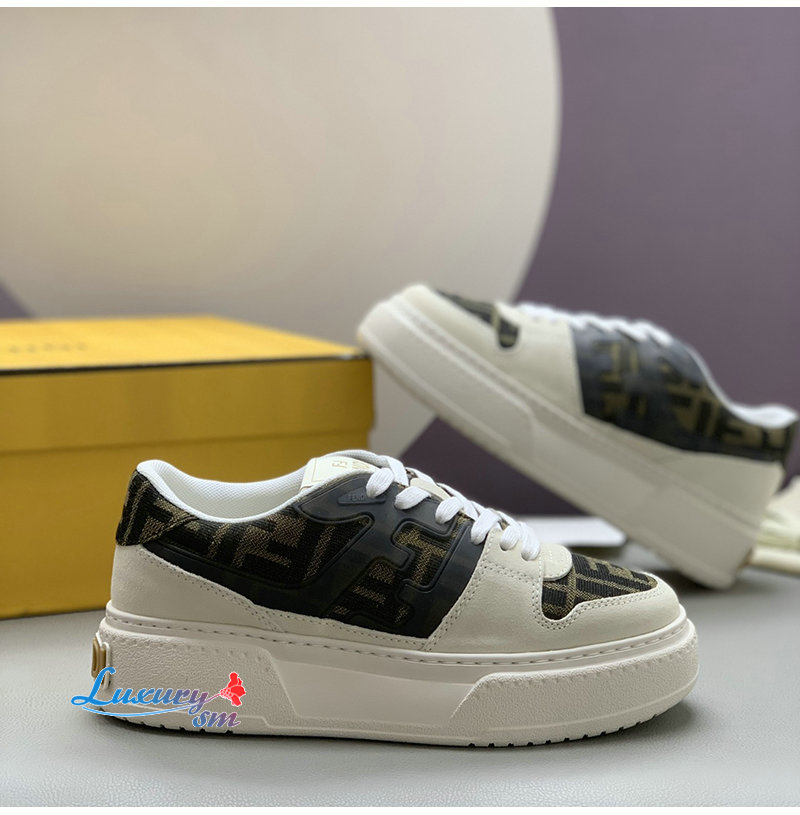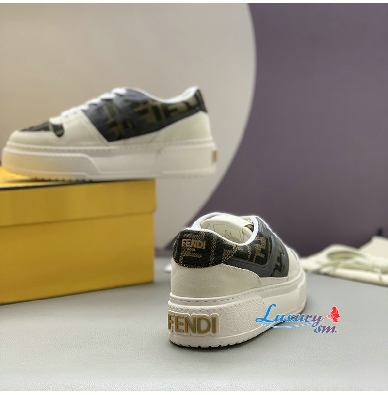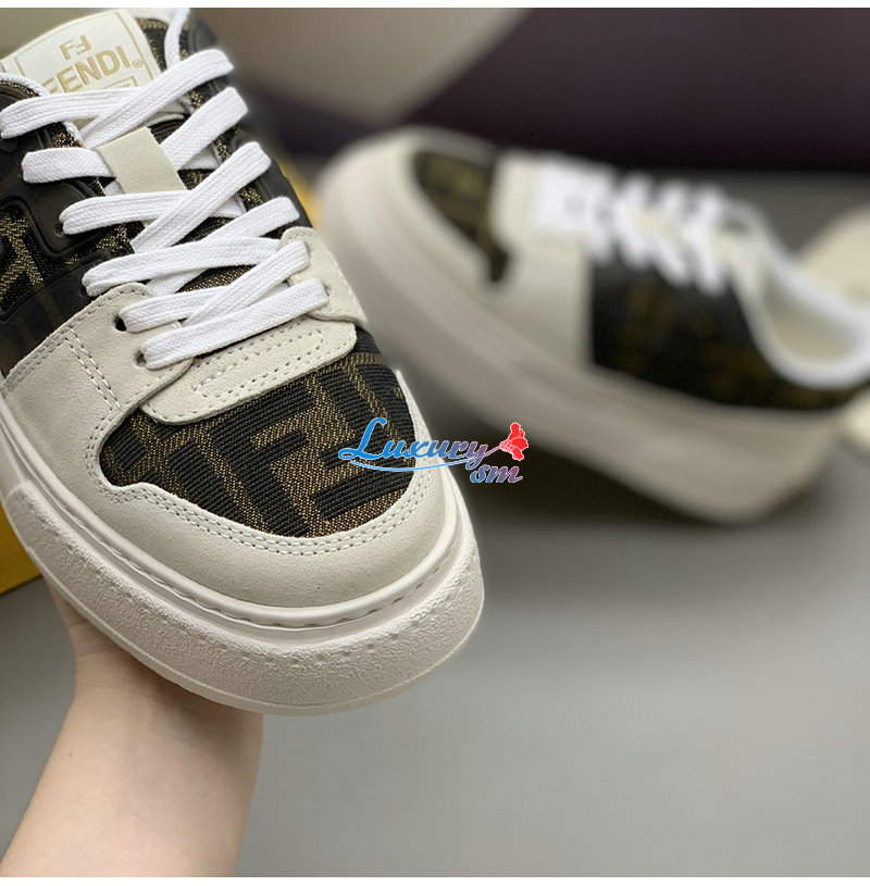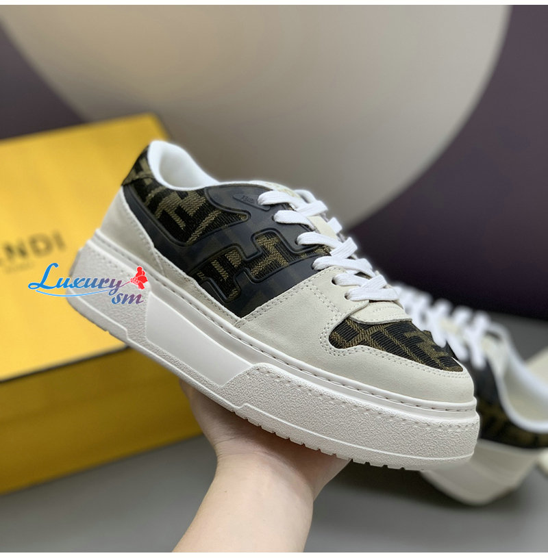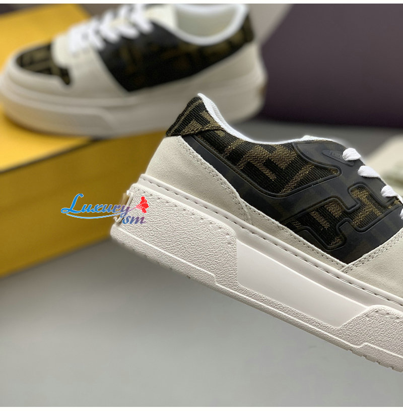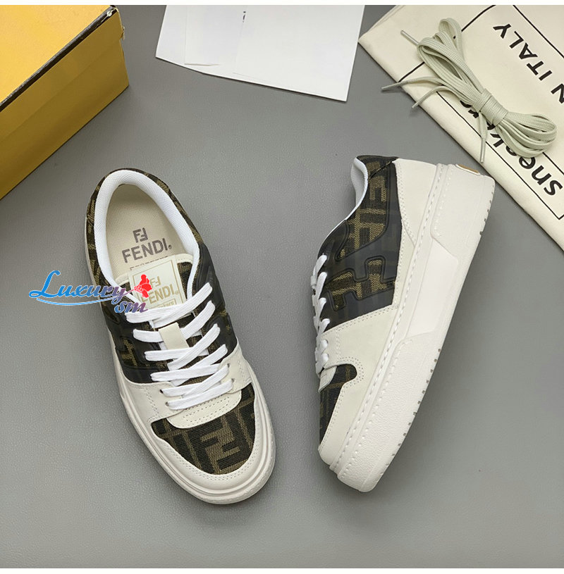 FENDI-8E8572 펜디 화이트/브라운 펜디 매치 레이스업 스니커즈 남여공용