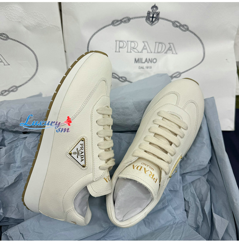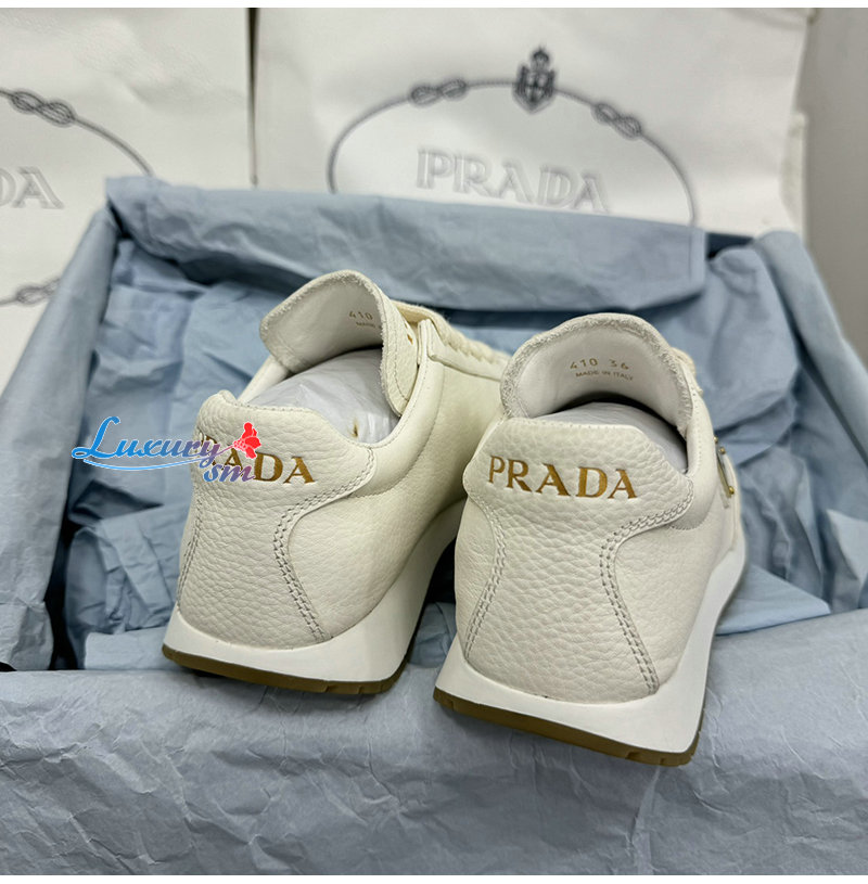 PRADA-2EG436 프라다 아이보리 가죽 트라이앵글 로고 스니커즈 여성용